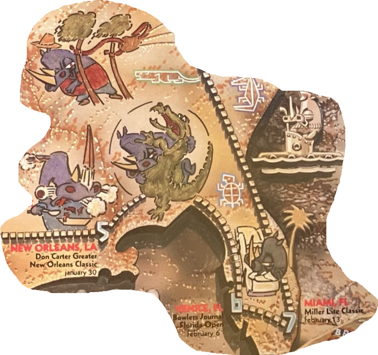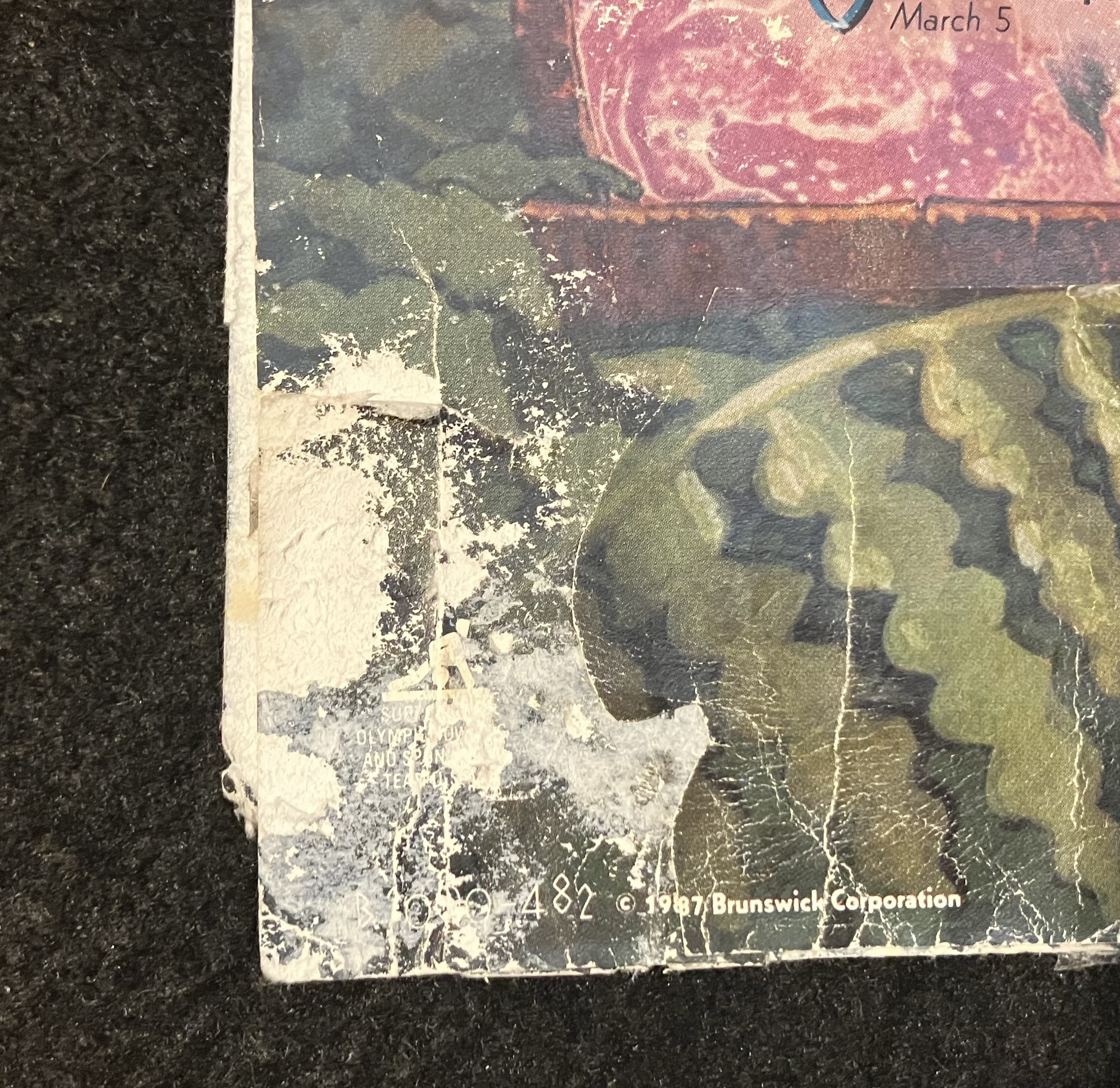 Can you see the pictogram? I believe it is a Brunswick logo. I don’t believe Deane designed this. The clean version came from a 1988 Brunswick catalog found online. It is noticeably different from the poster version.