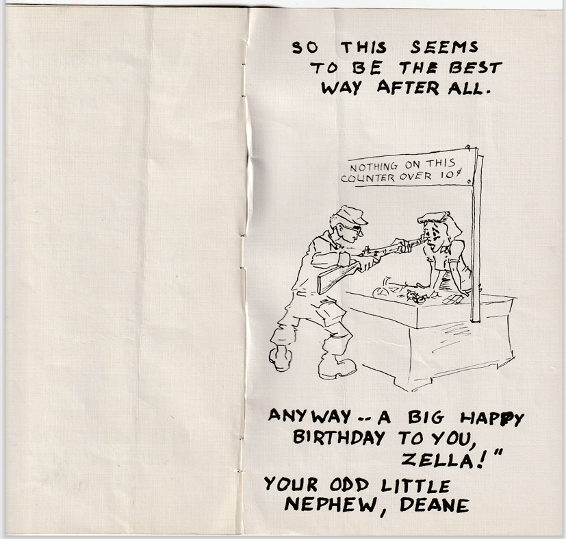 Going back to birthdays… From Deane to his Aunt Zella, 1952 during his stint with the army.