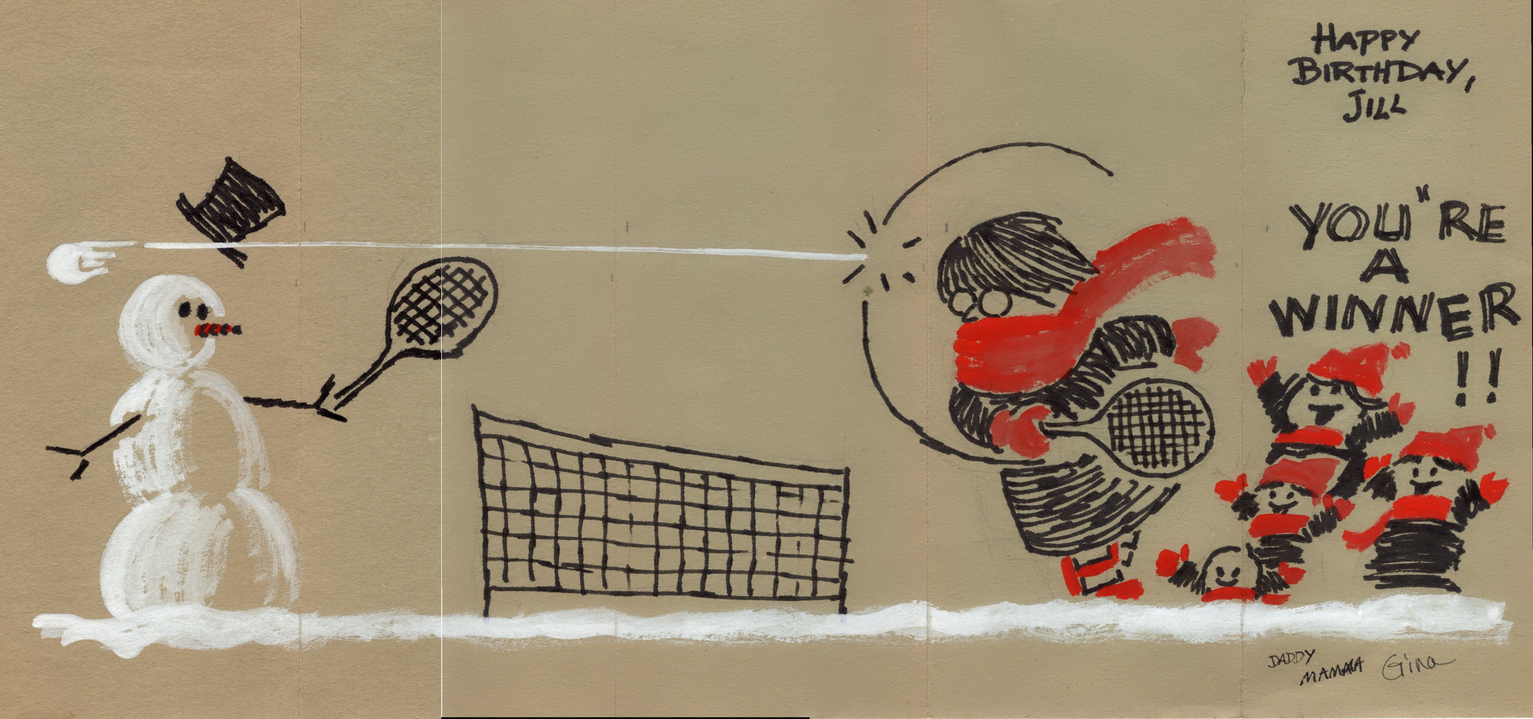 Deane didn’t make one for Gina, and when she pointed it out, he made up for it with birthday cards.