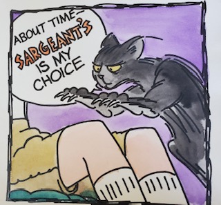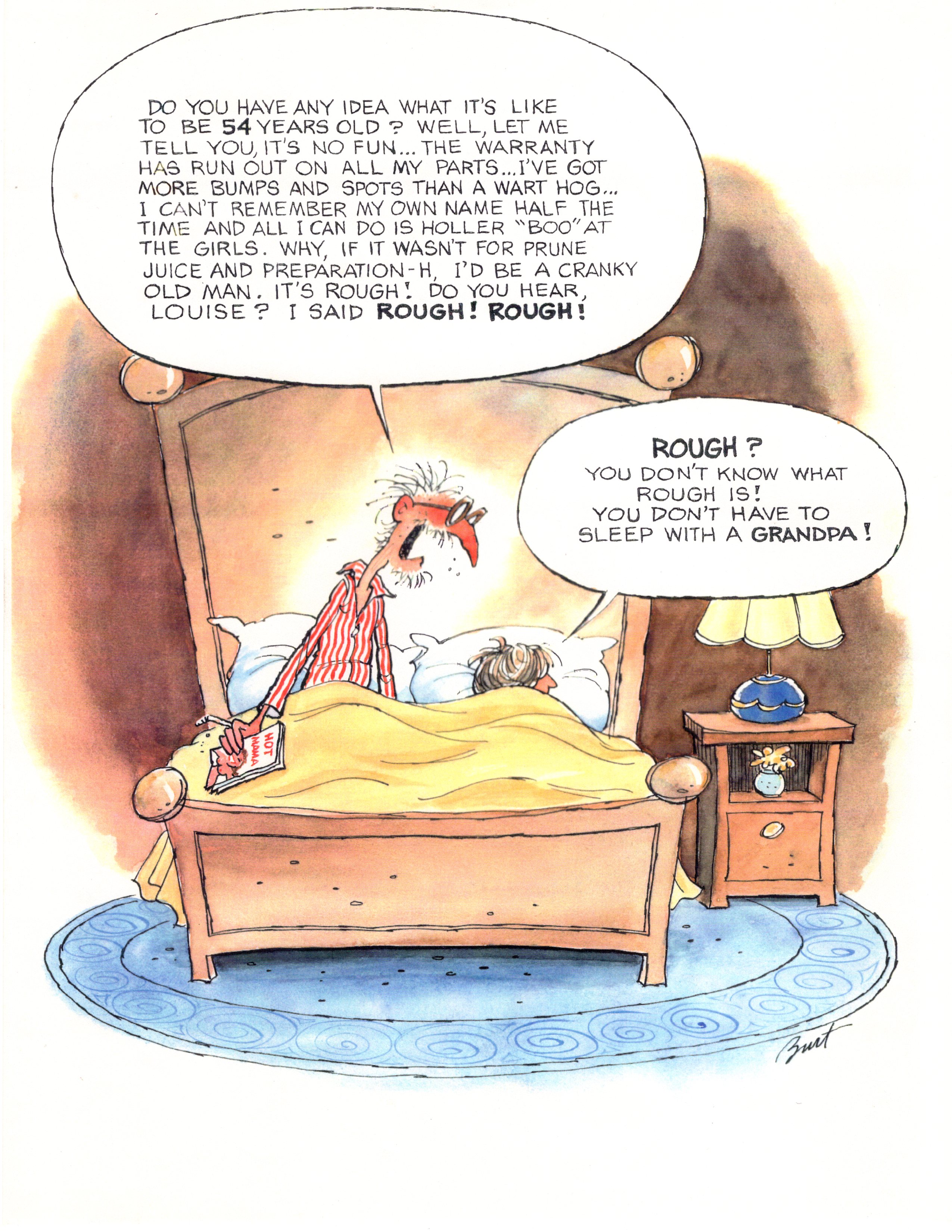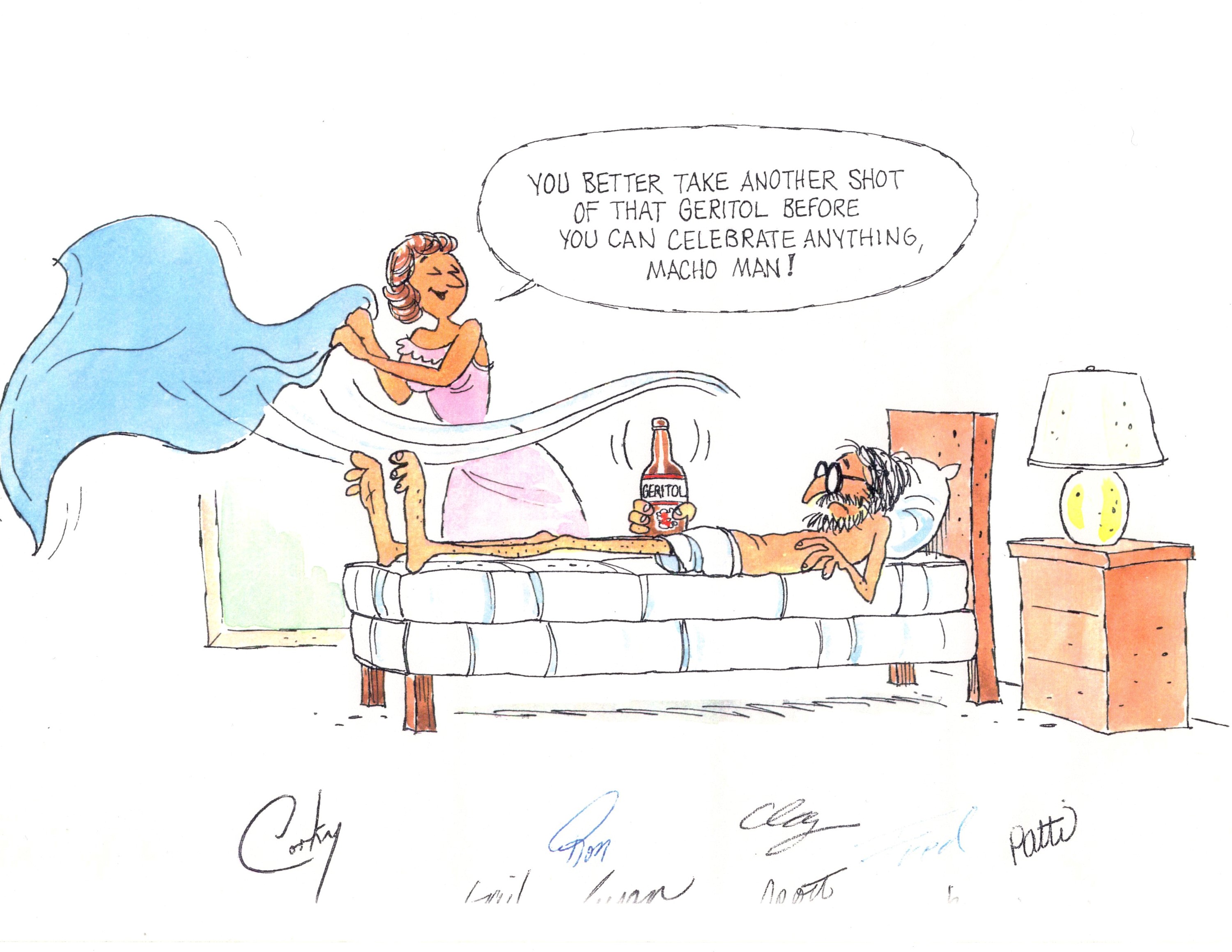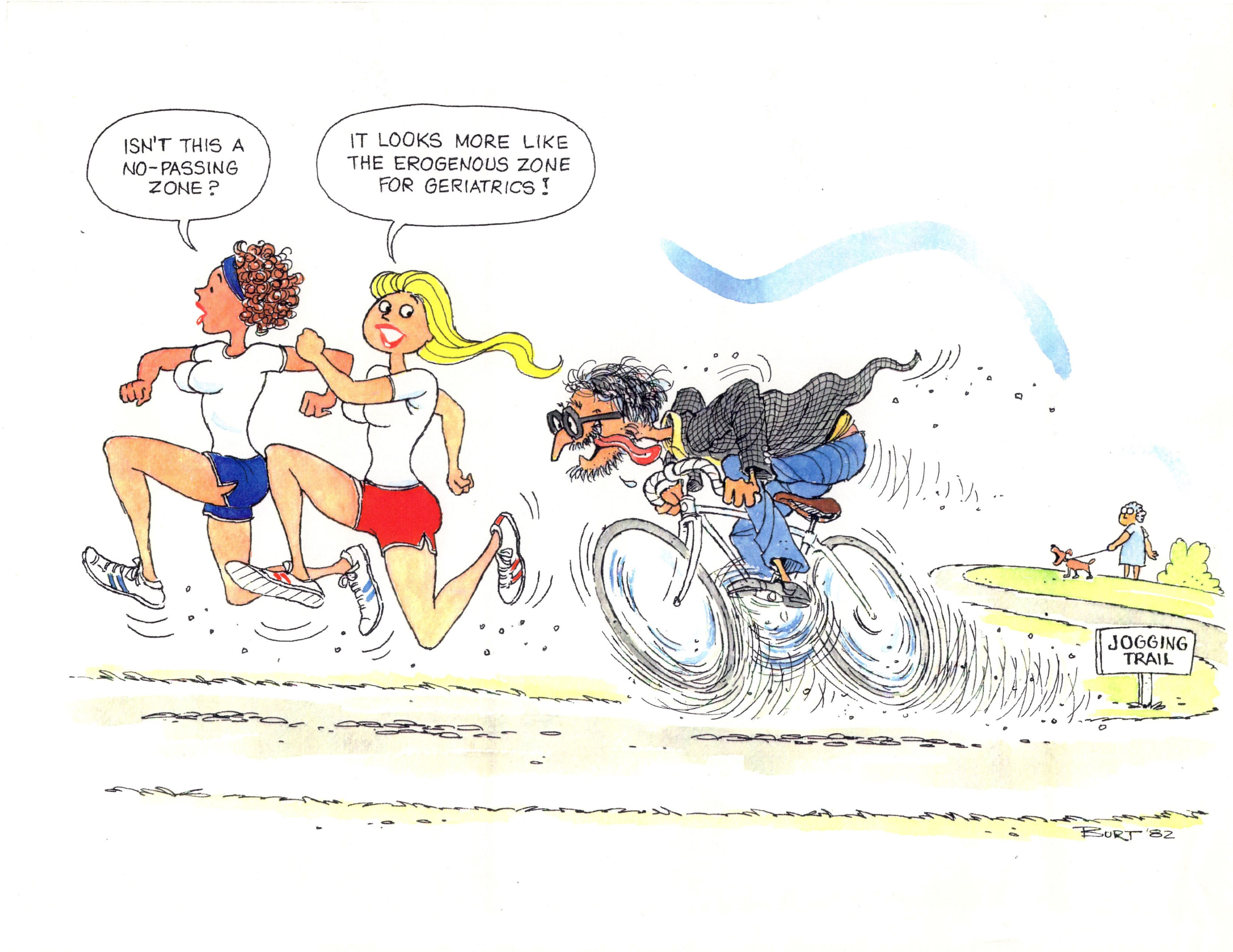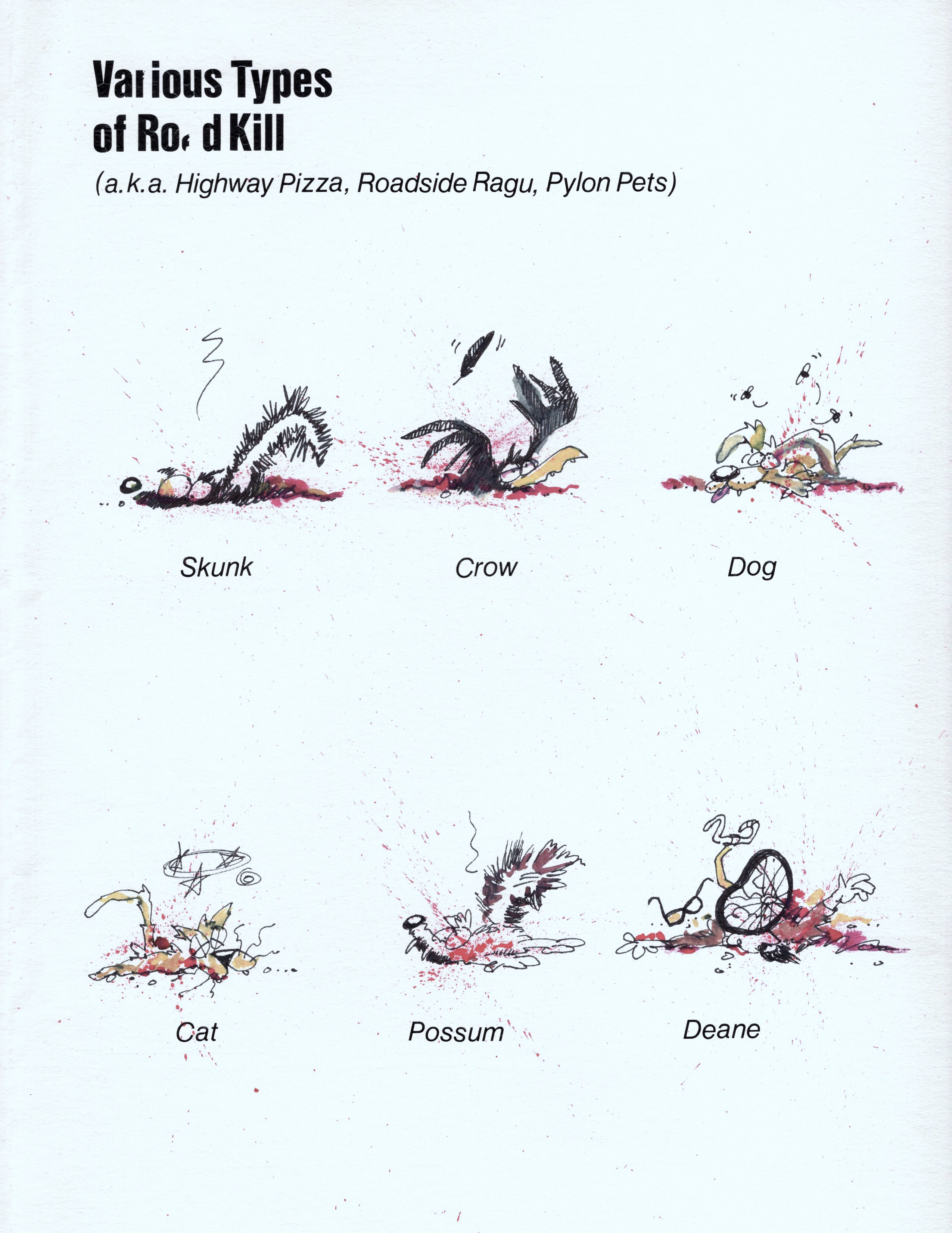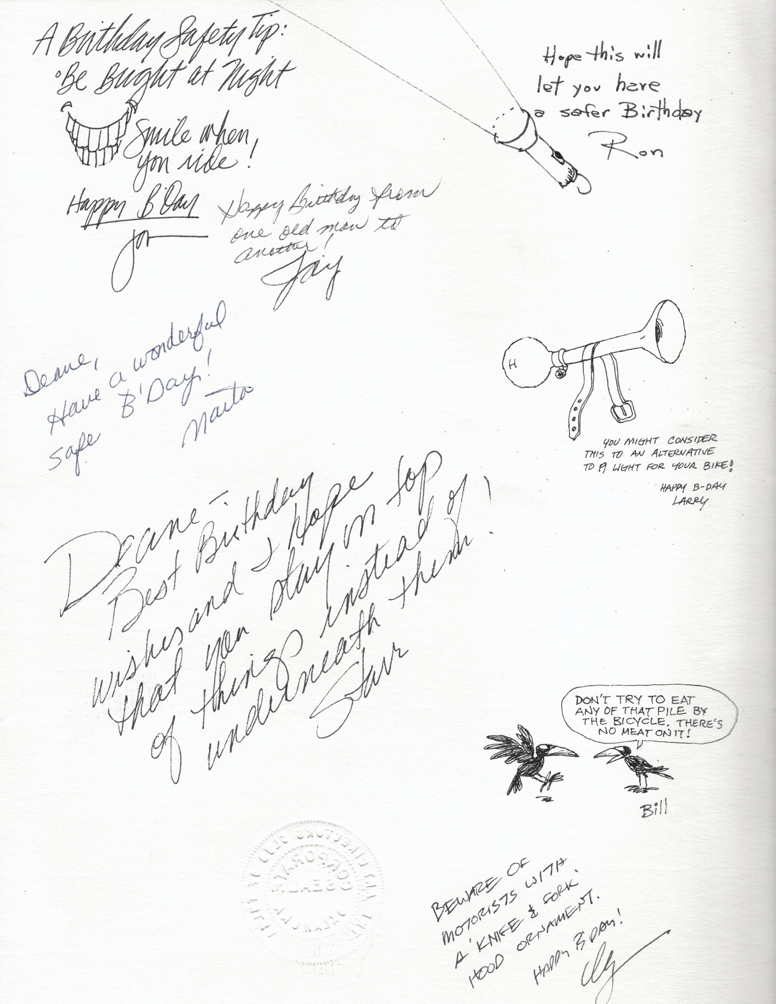 Deane got birthday cards from his co-workers. This one apparently happened after he got into a bicycle accident. All drawn by Burt
