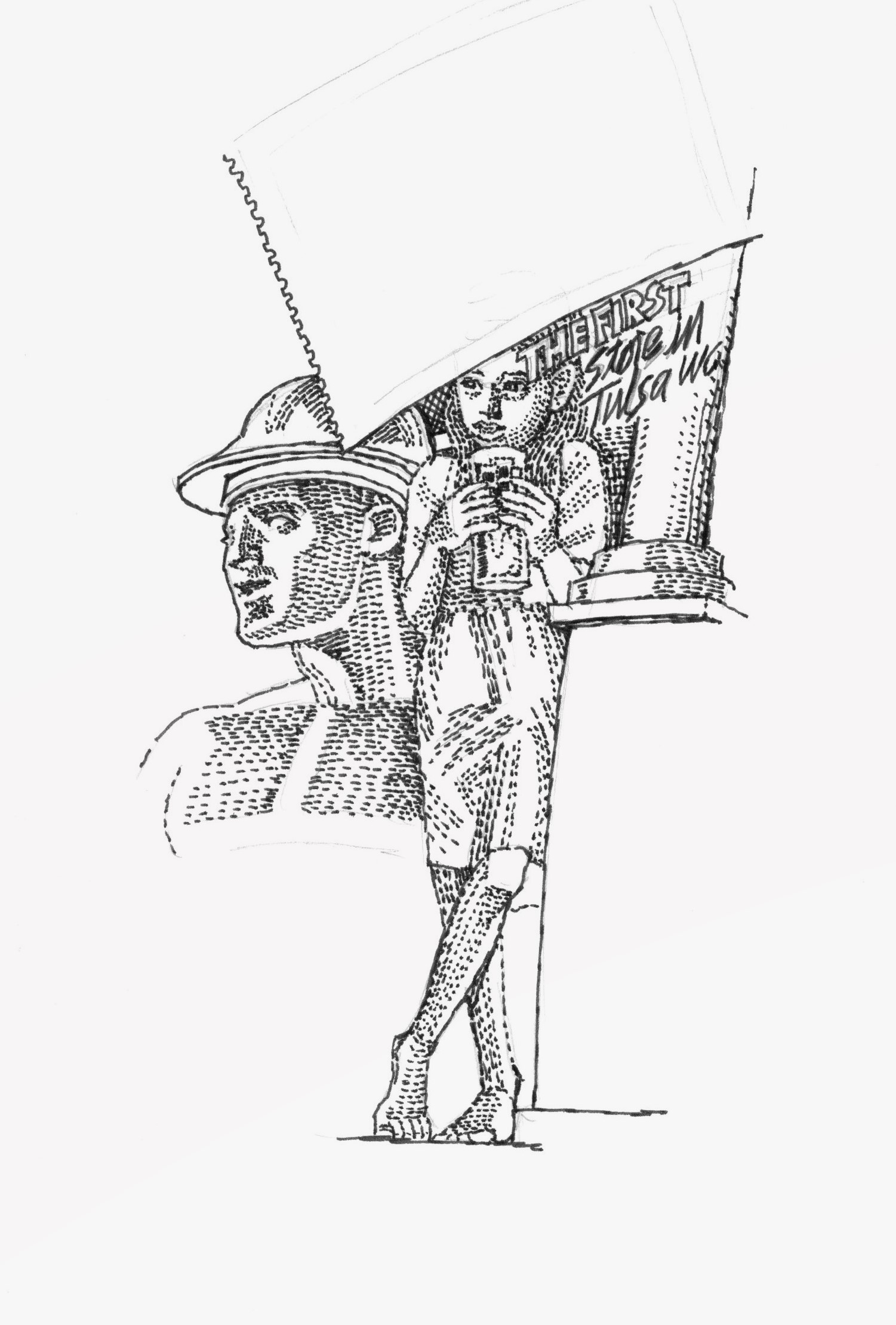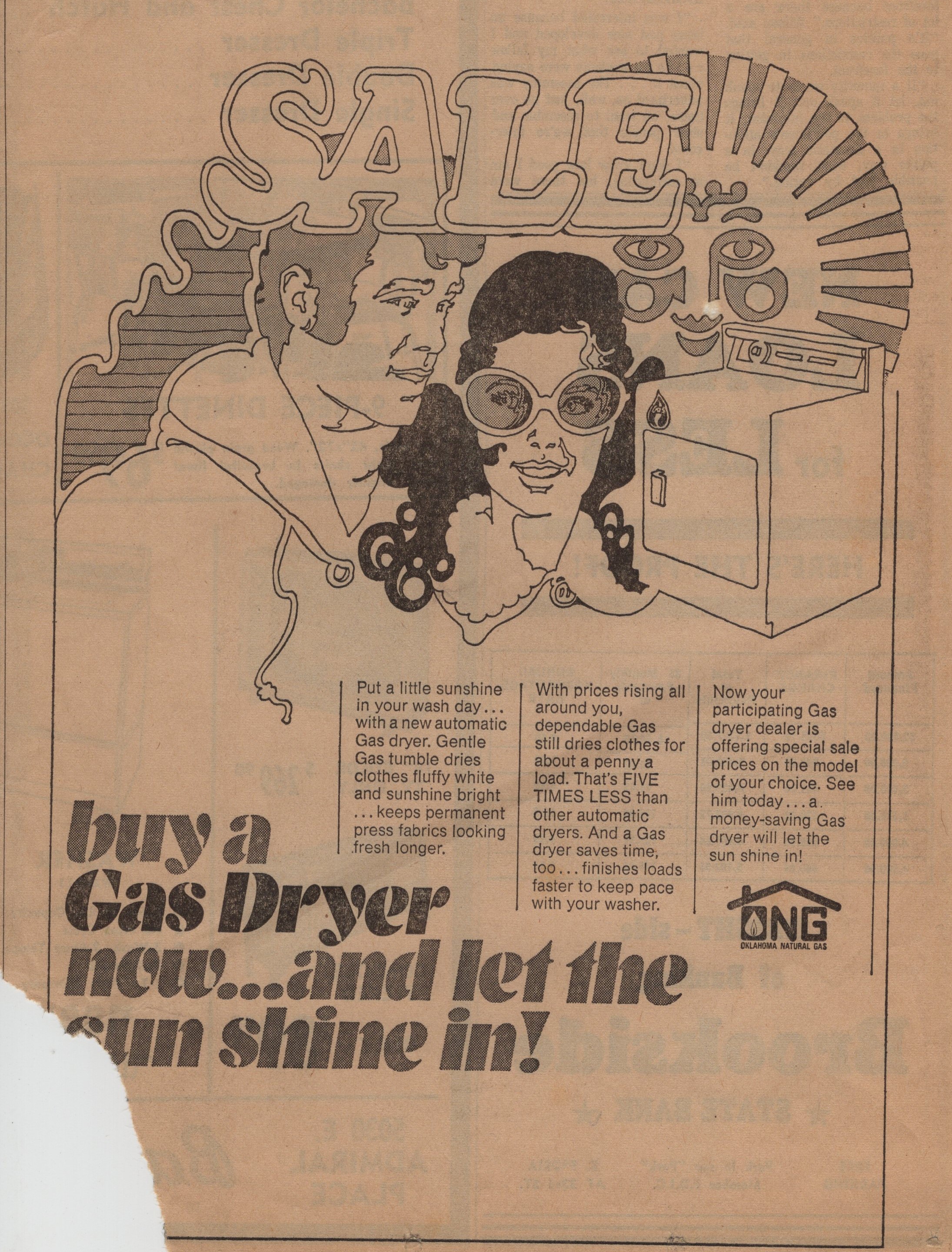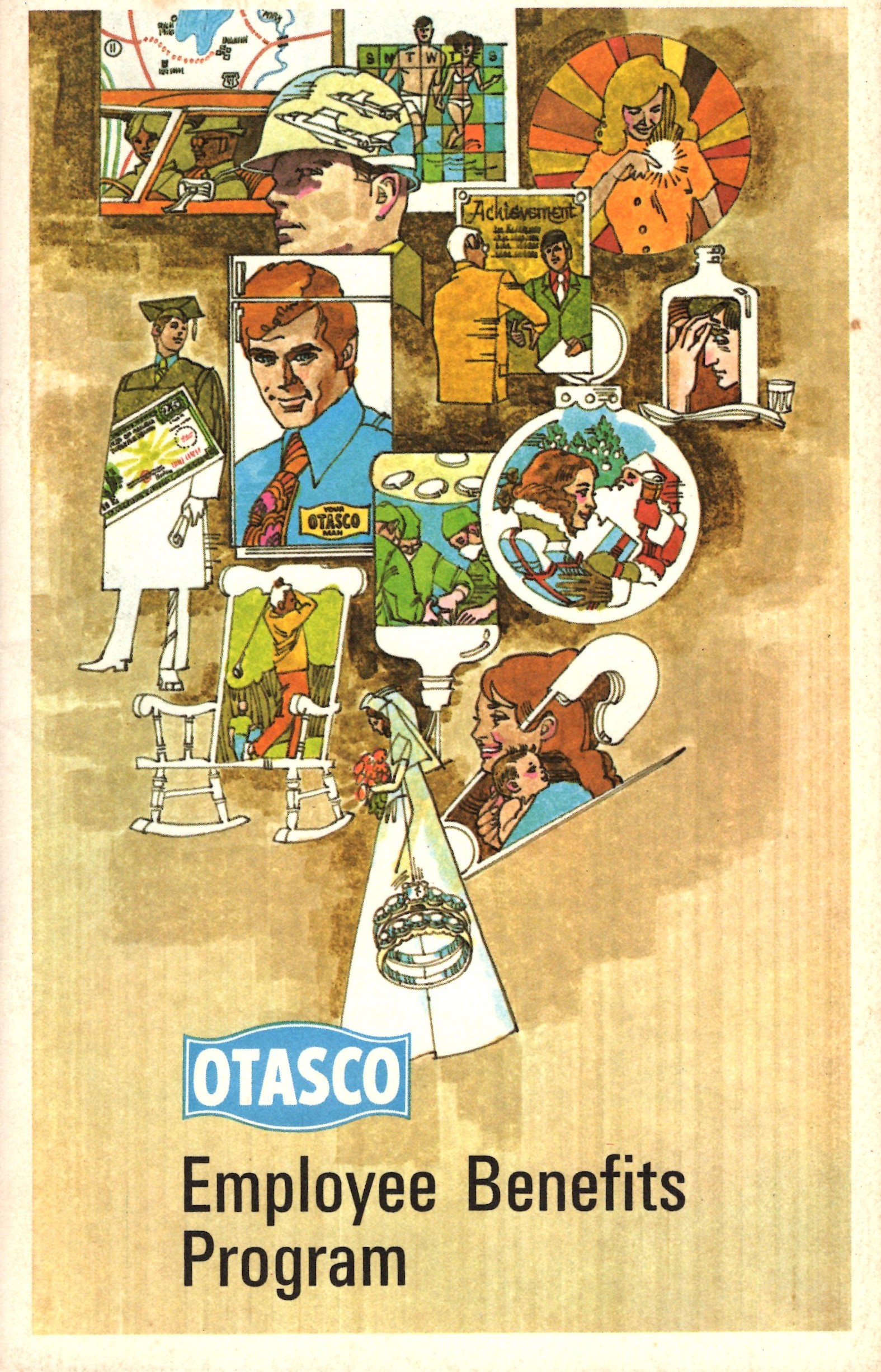 Around the time Deane made the art for the above Truckload Tire Sale ad, he was commissioned by OTASCO to make art for their Employee Benefits Program booklet, 1972. Oklahoma Tire and Supply Company boasted “hundreds of stores covering 13 states” by 1968. I don’t know how many stores Tulsa had at their peak but there was one on Brookside. The Ingrahams lived in a neighborhood to the north. Jill remembers buying bicycle tire tubes and soccer cleats. What did you buy at your local OTASCO? There are two left in Oklahoma.