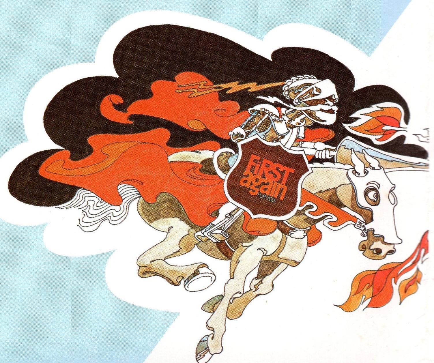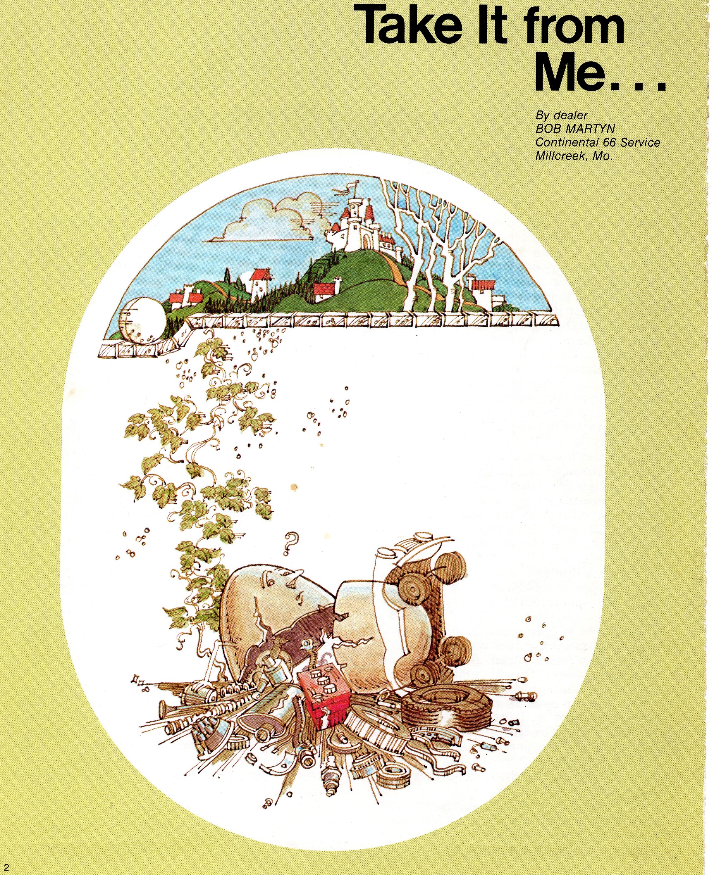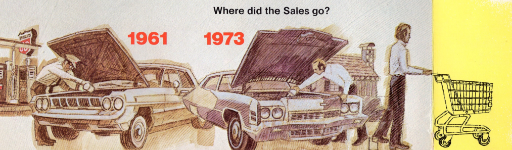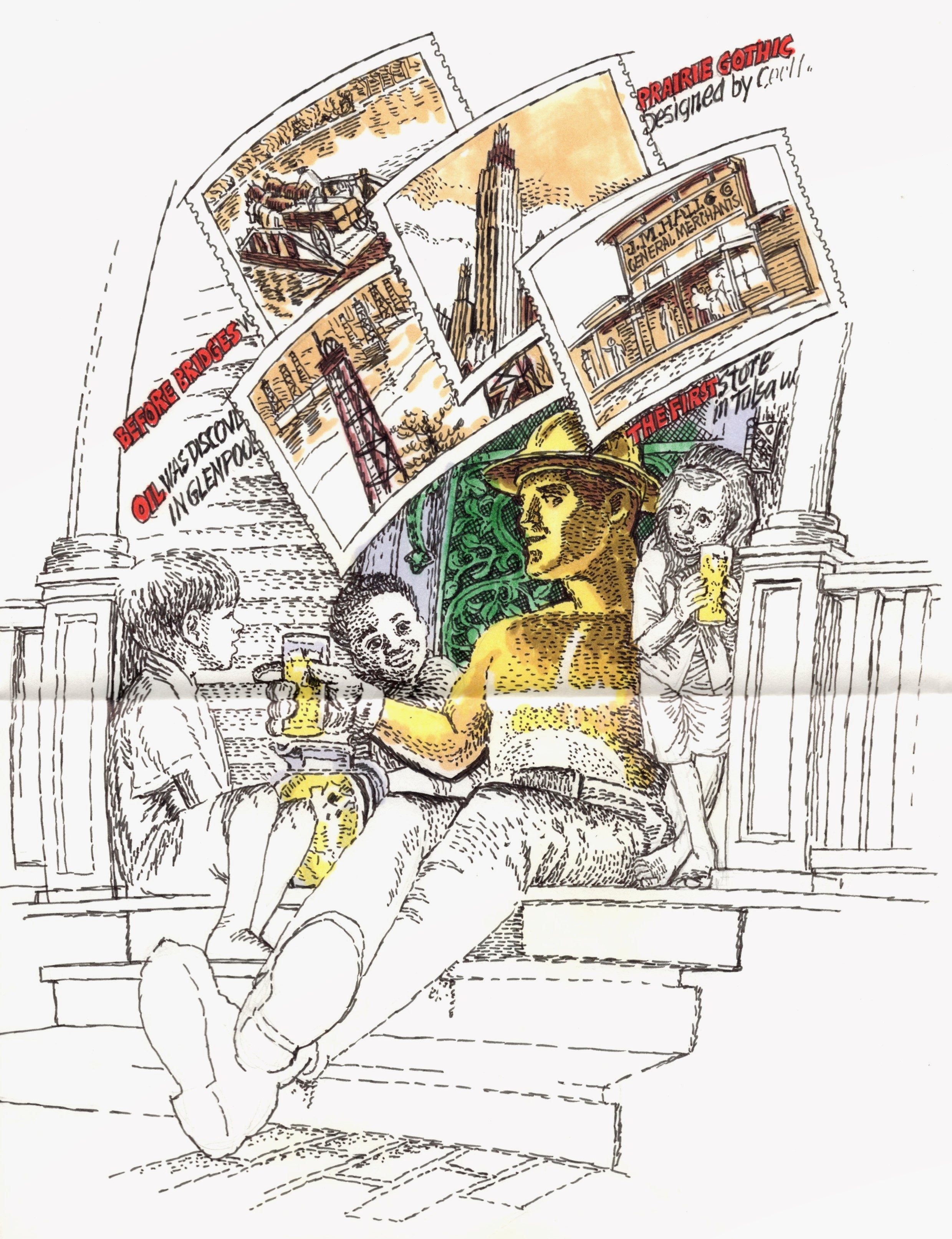 Around the time Deane made the art for the above Truckload Tire Sale ad, he was commissioned by OTASCO to make art for their Employee Benefits Program booklet, 1972. Oklahoma Tire and Supply Company boasted “hundreds of stores covering 13 states” by 1968. I don’t know how many stores Tulsa had at their peak but there was one on Brookside. The Ingrahams lived in a neighborhood to the north. Jill remembers buying bicycle tire tubes and soccer cleats. What did you buy at your local OTASCO? There are two left in Oklahoma.