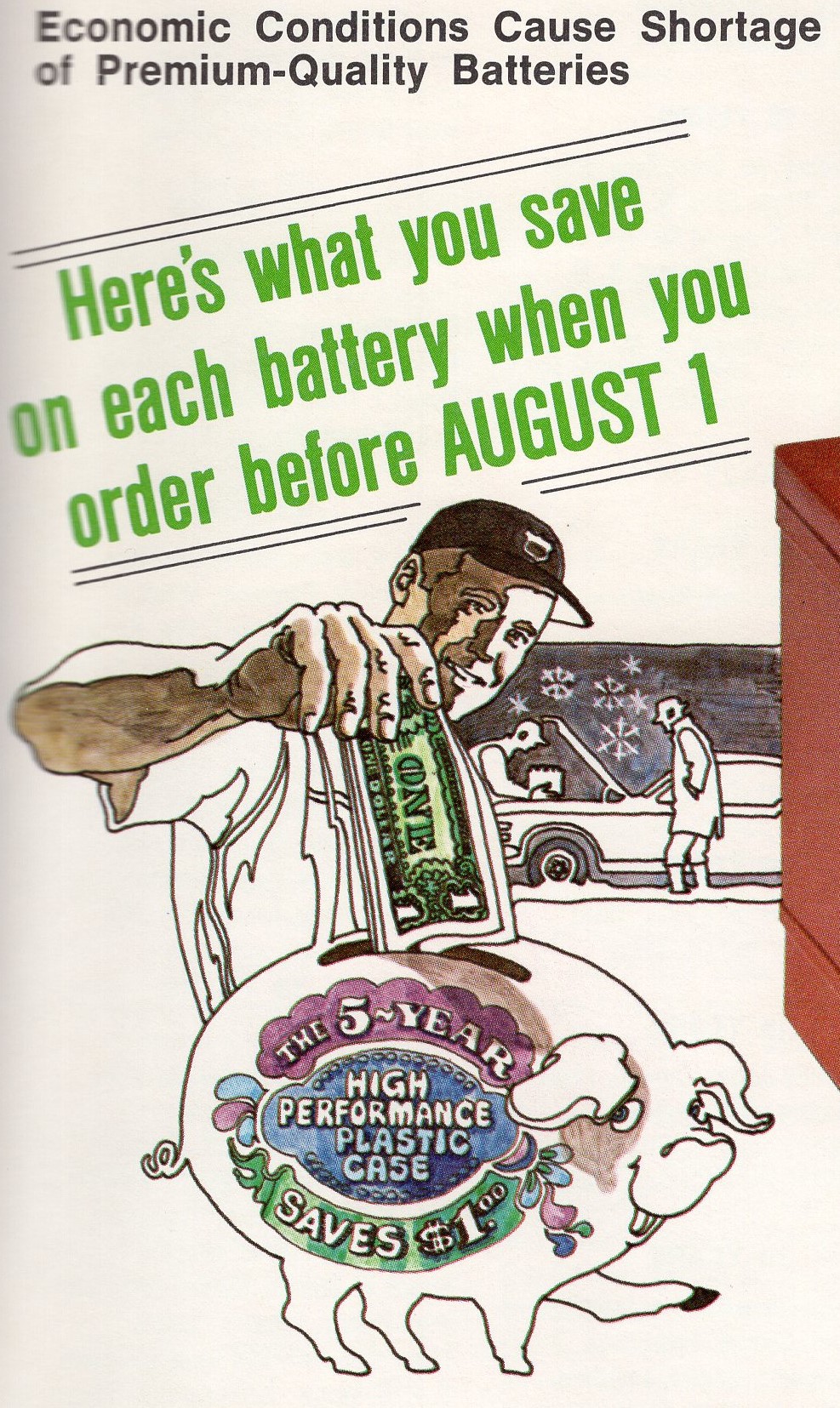 Below, February 1978 4-page brochure featuring signboards for sale plus other promotions from the Advertising & Merchandising Section.
