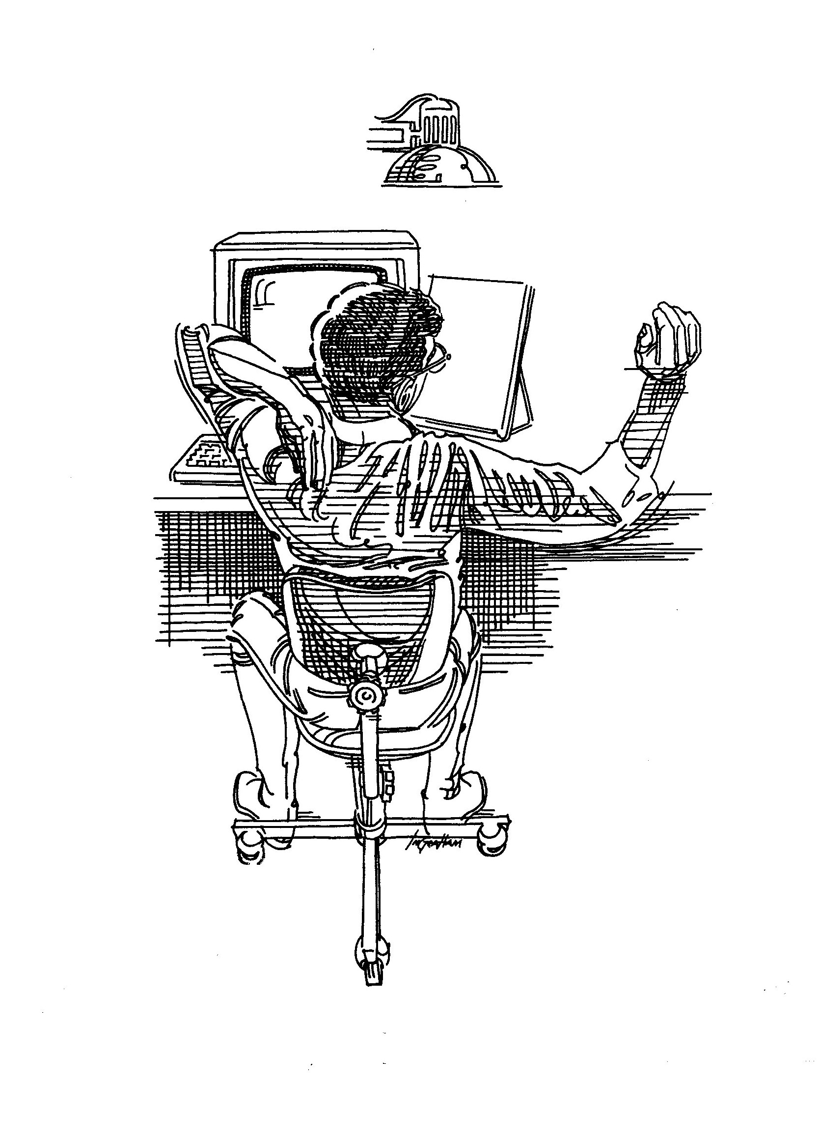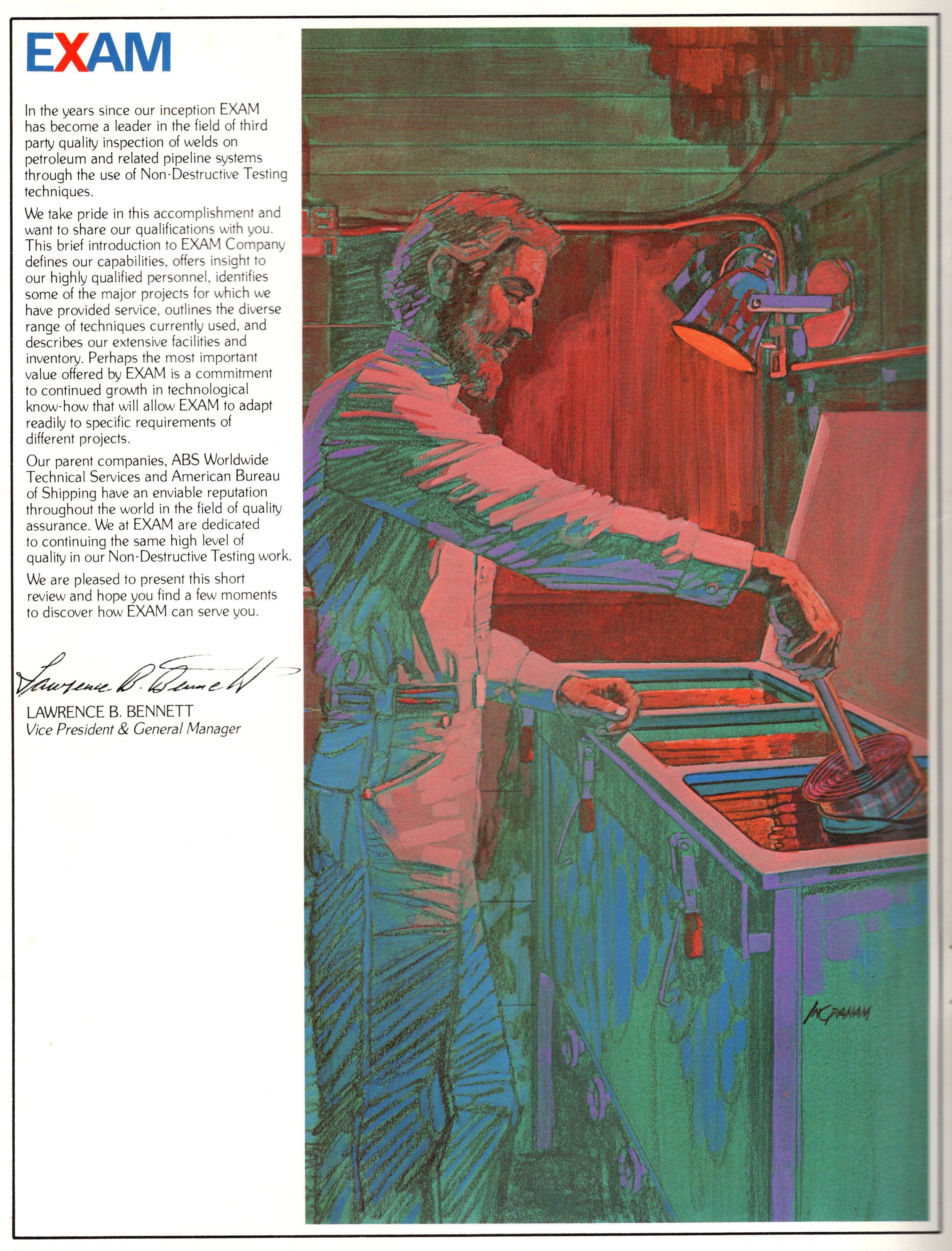 EXAM, after 1975. The person in the first image looks like Deane’s best friend Orren Sahlman. They worked together at Crawford, Hill, and Assoc. For another image of Orren, see the last watercolor picture under The Seventies.