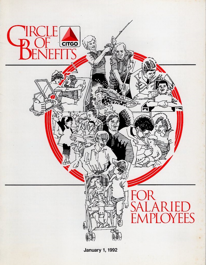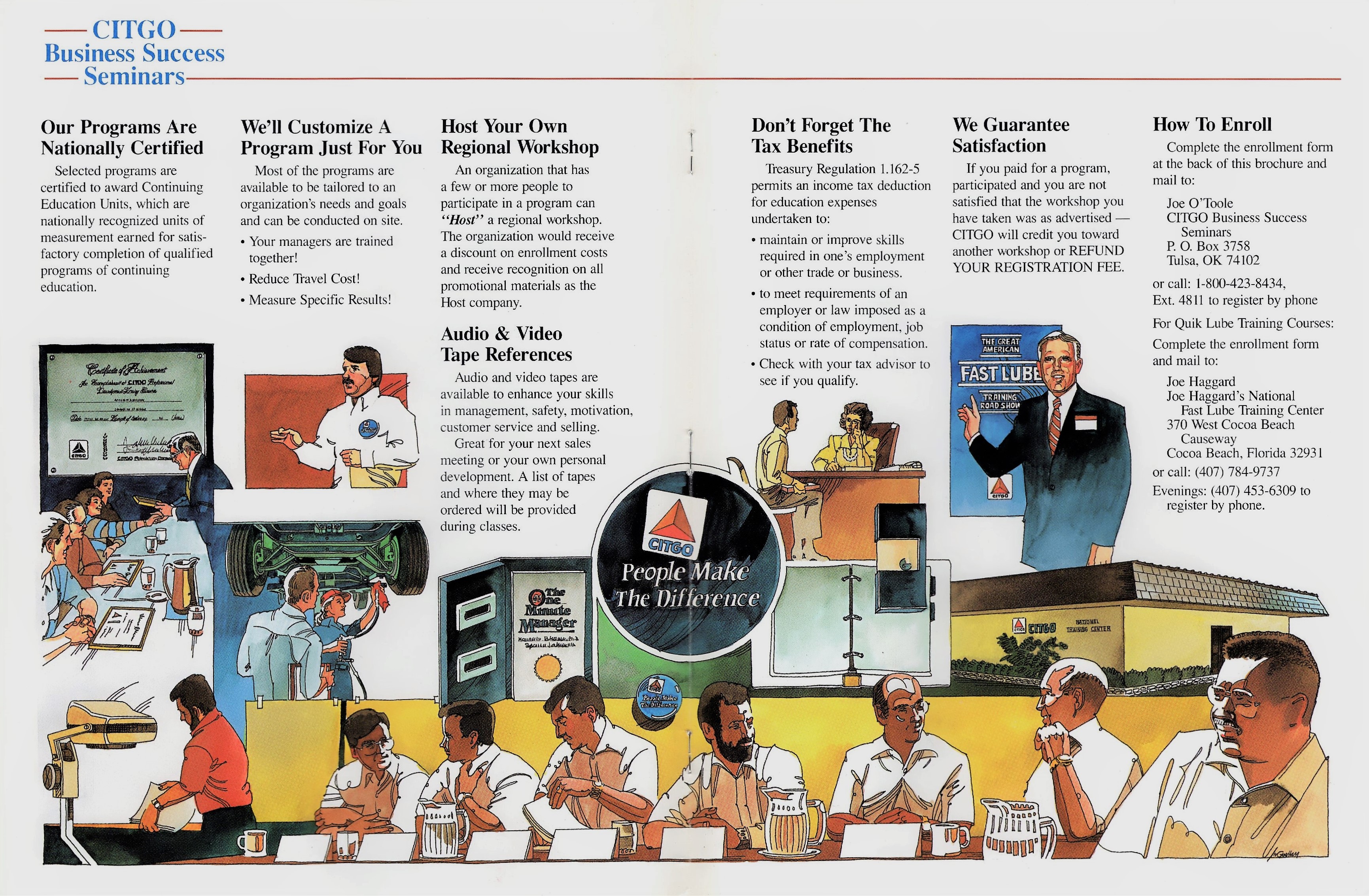 Below, artwork adorning front covers of various Citgo folders. Around 1991.