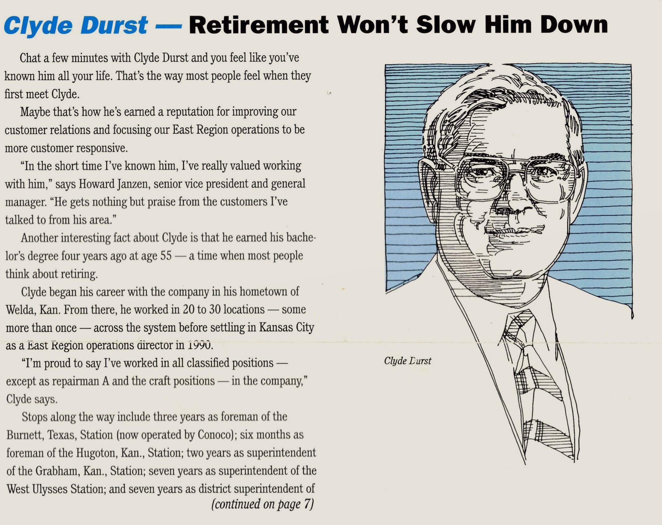 This image is from an unknown page from a Williams Natural Gas magazine. It references “…a series of deep-freeze days in late December and early January 1988 heated up activity at WNG’s Tulsa headquarter and along the 9,700-mile system through Wyoming, Colorado, Nebraska, Kansas, Missouri, Oklahoma and Texas. While other folks huddled by the hearth, WNG employees packed the pipeline with natural gas to fuel furnaces.”