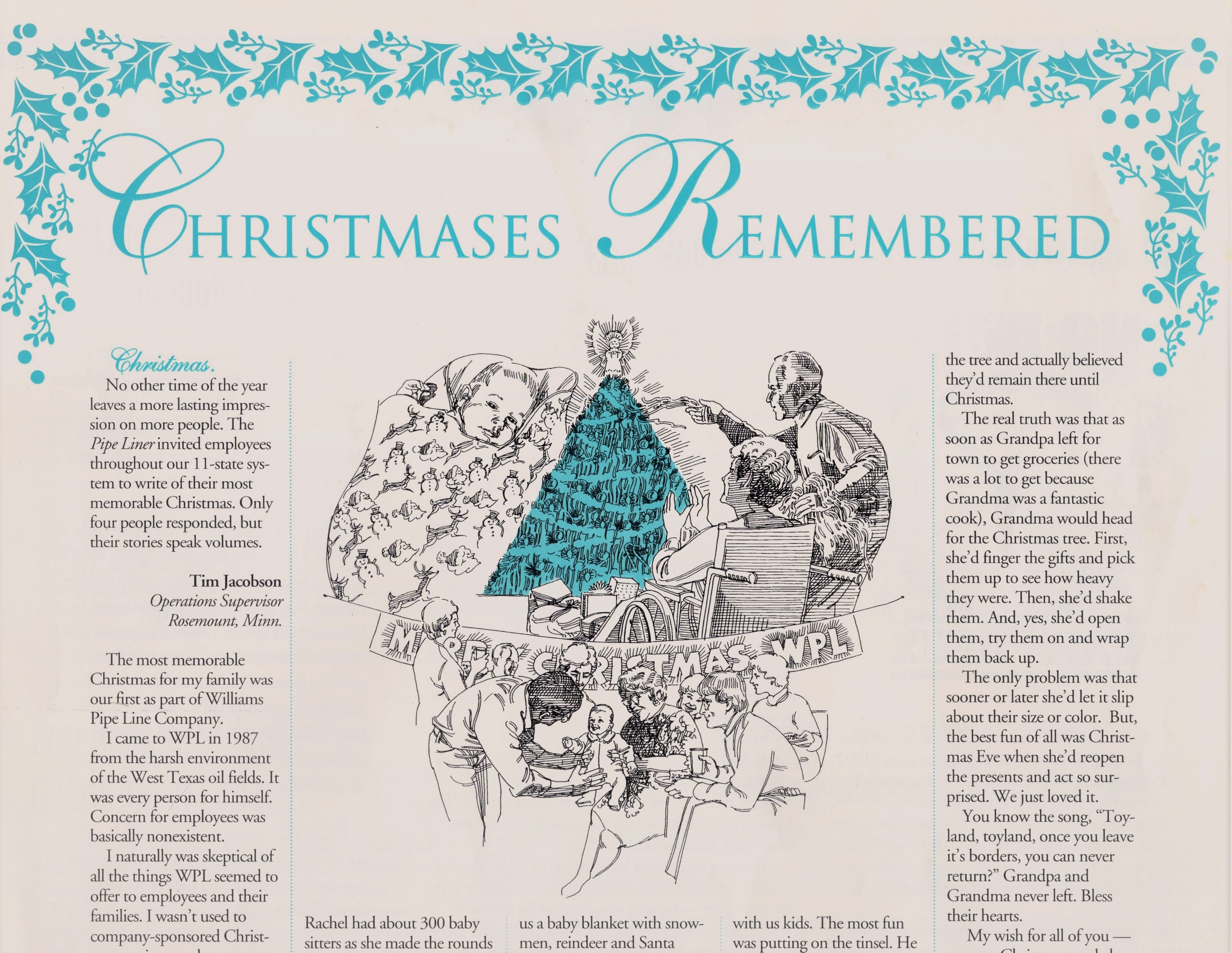 Below, “What’s Your Most Unusual Christmas Story?” art from Williams Weekly December 21, 1987 (The Williams company)