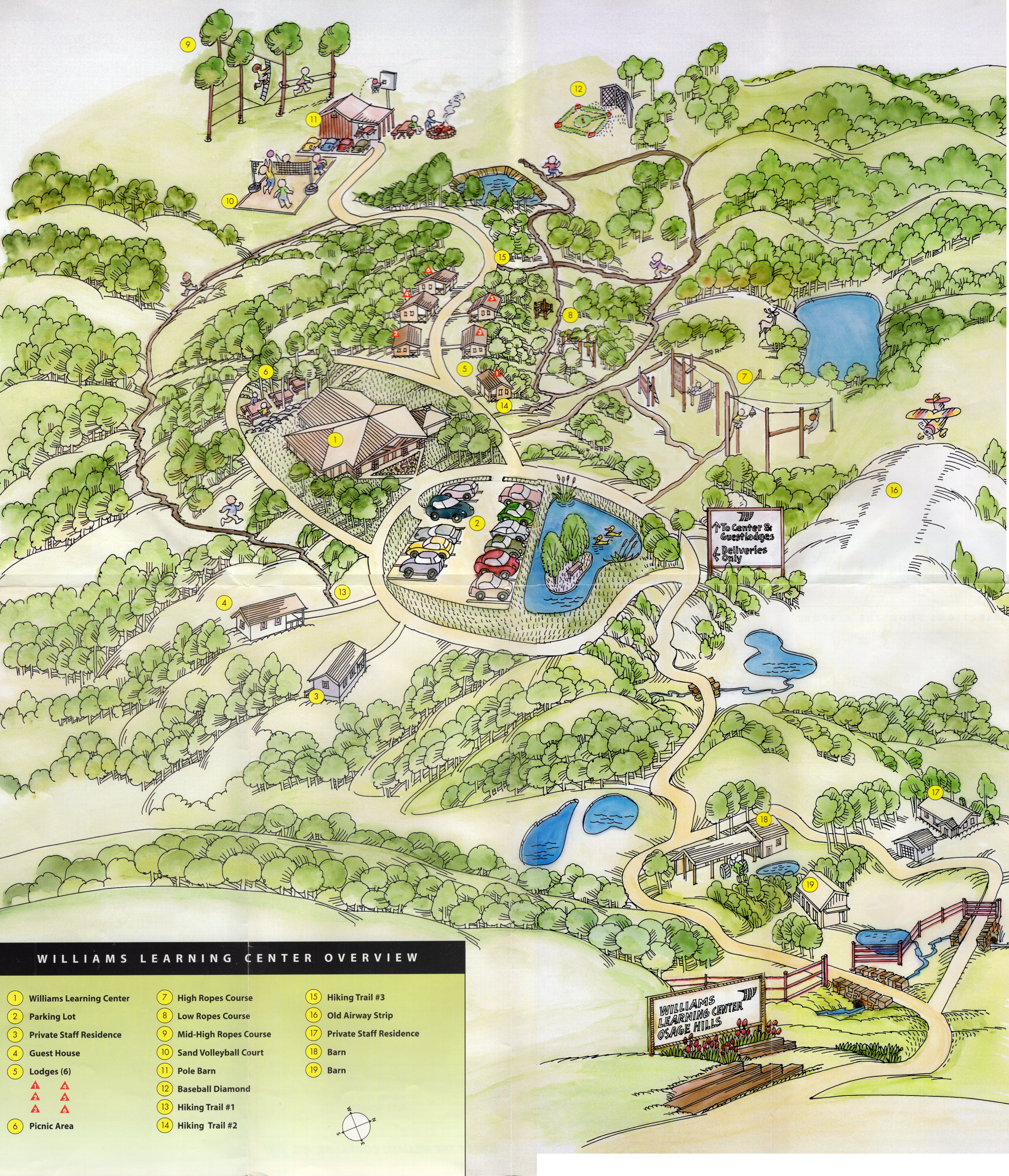 This poster is inside a visitor’s guide brochure for Williams Learning Center at Osage Hills. It is now POSTOAK Lodge and Retreat. 1998.