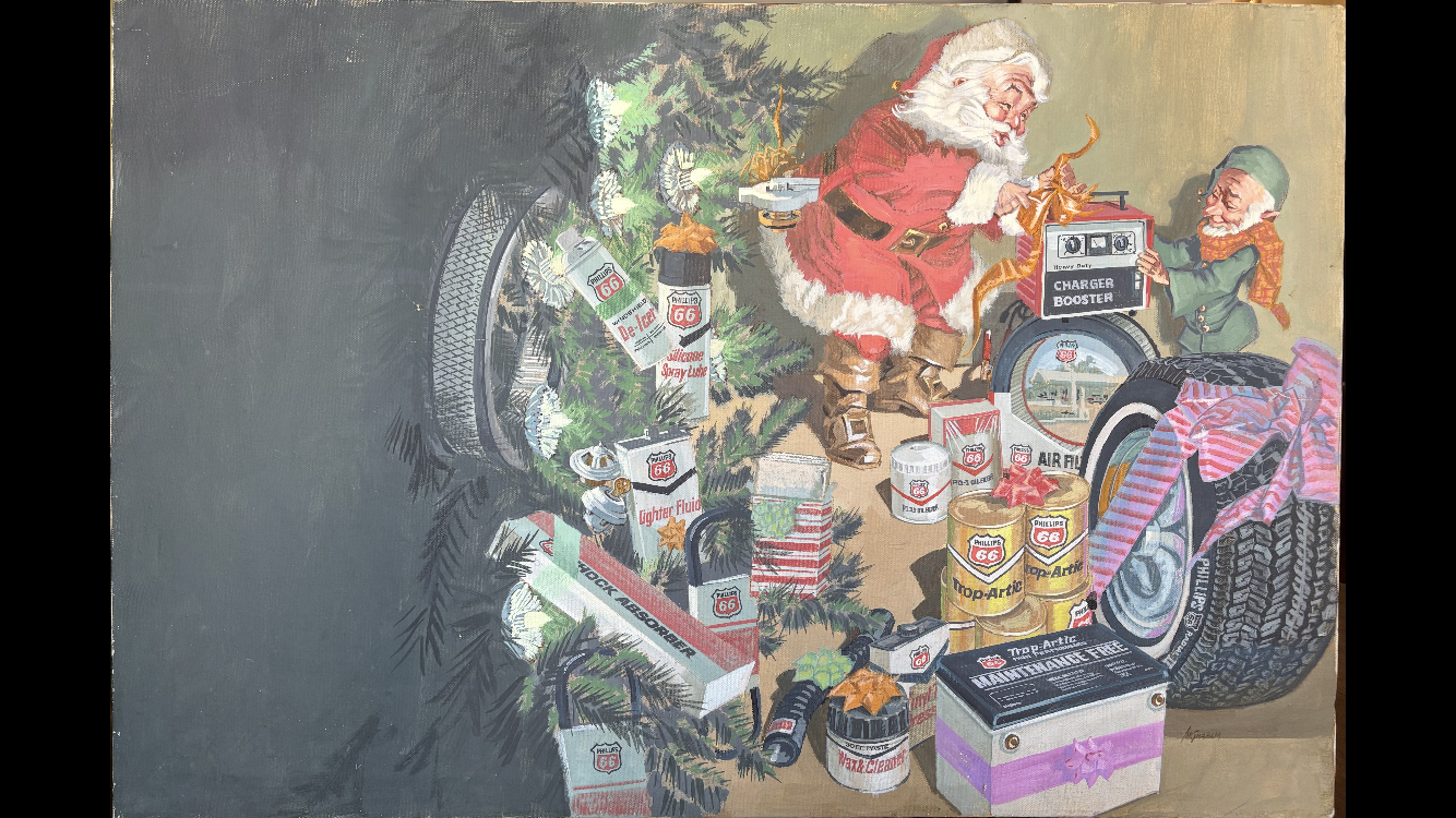 Another Christmas art for Williams. Notice Deane is bending over to pick up the baby. 1994