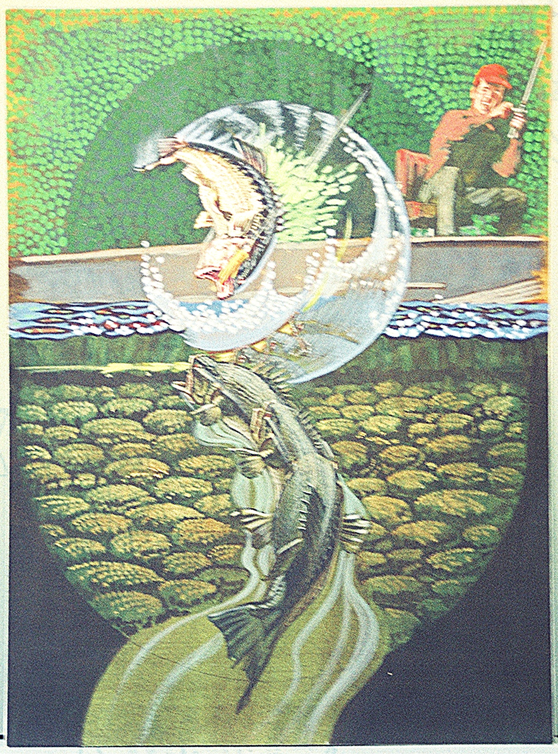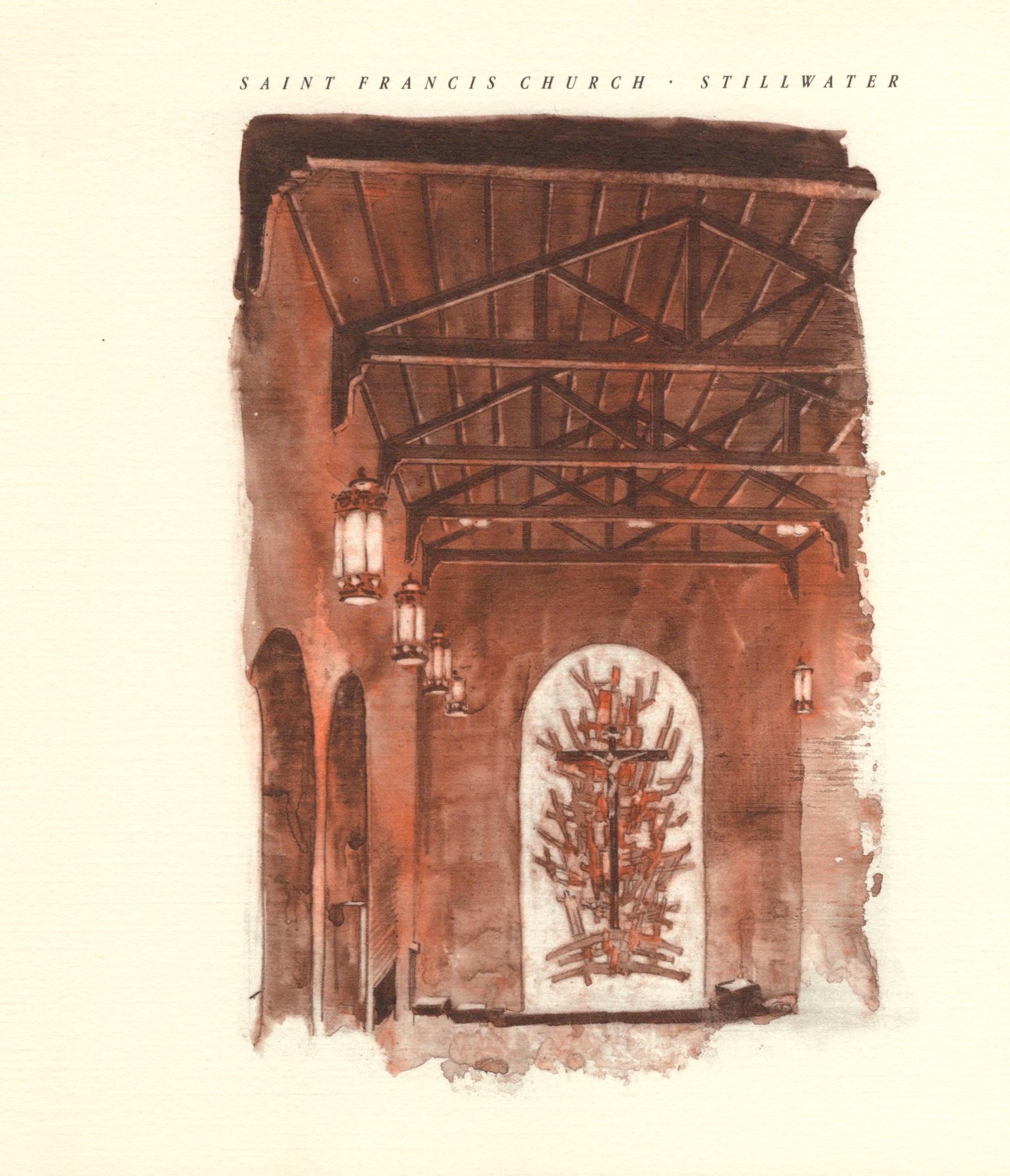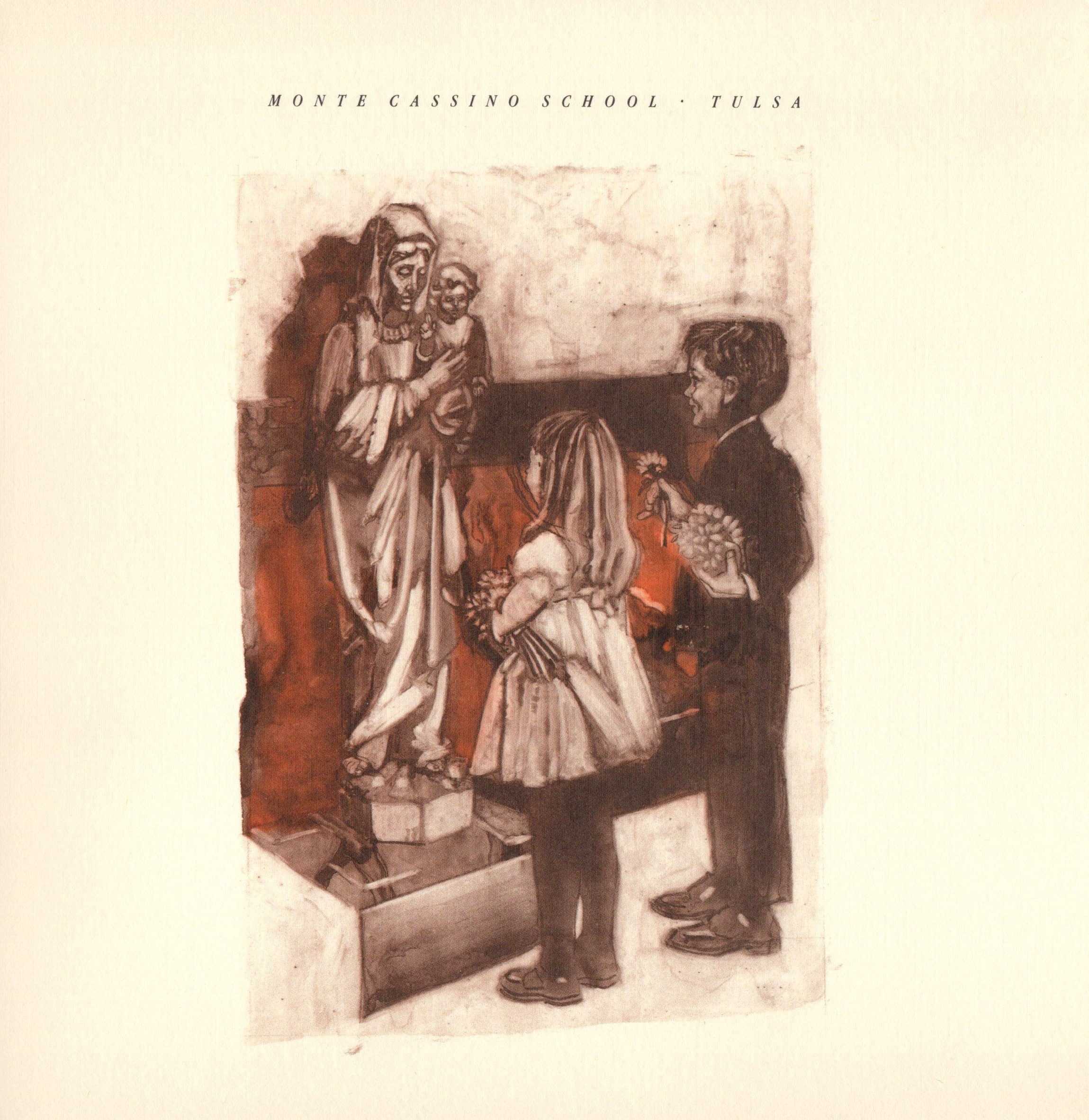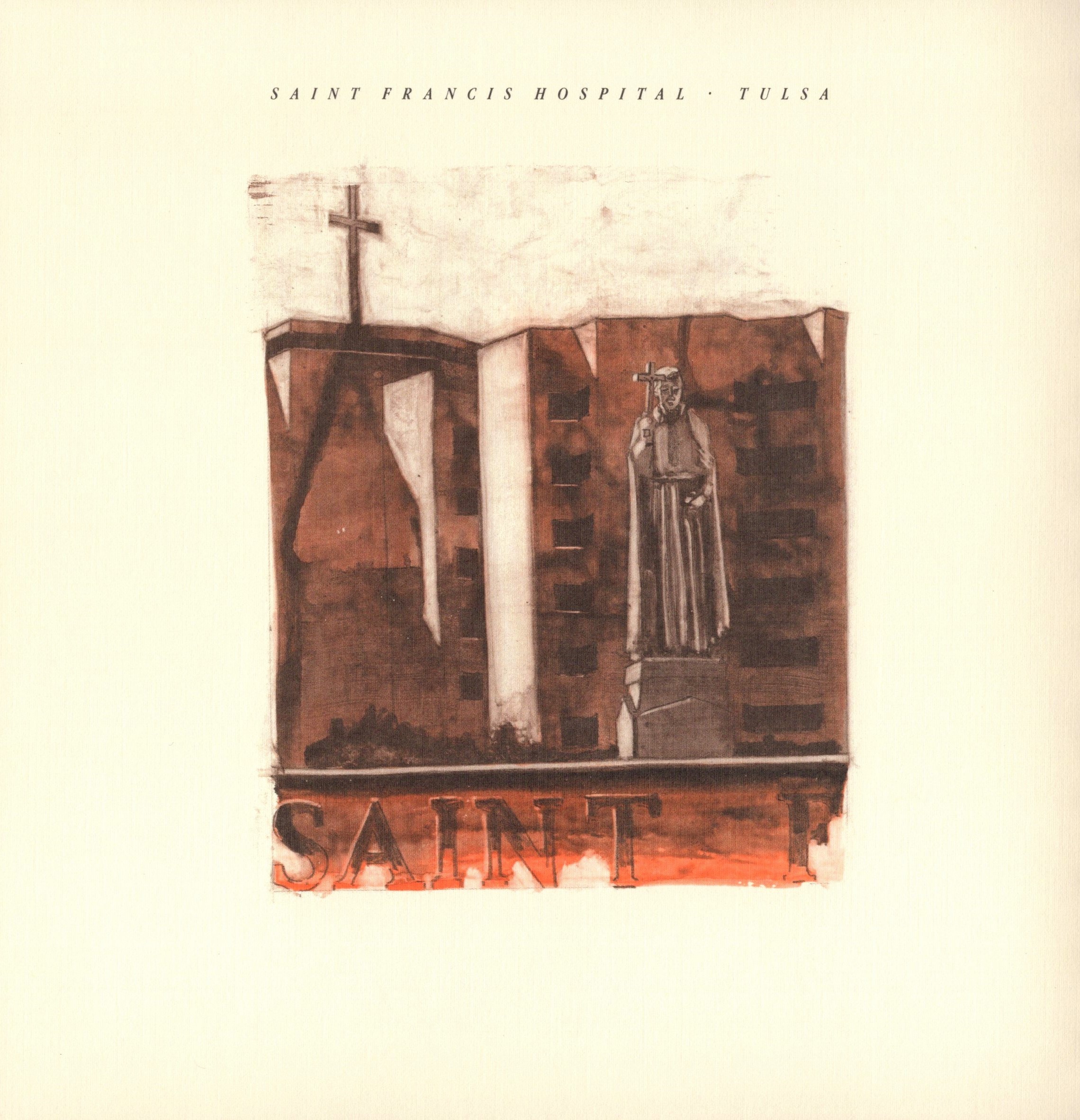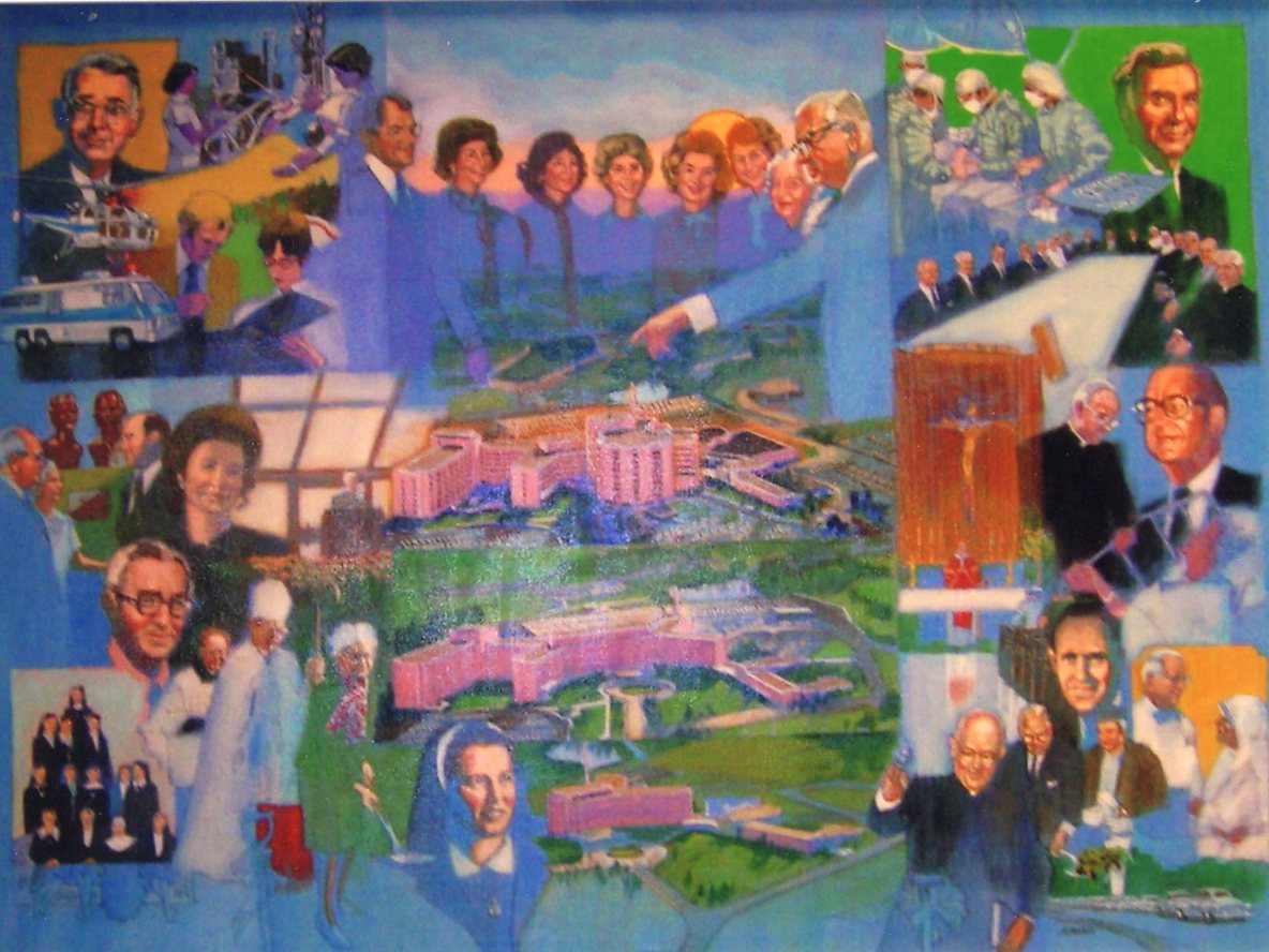 This collage, painted for St. Francis Hospital, was publically displayed from mid 1980s to about 2014 when the hospital began an extensive renovation. It was up a ramp in the hallway next to the chapel and was taken down. I regret not getting a better quality photo before the renovation.