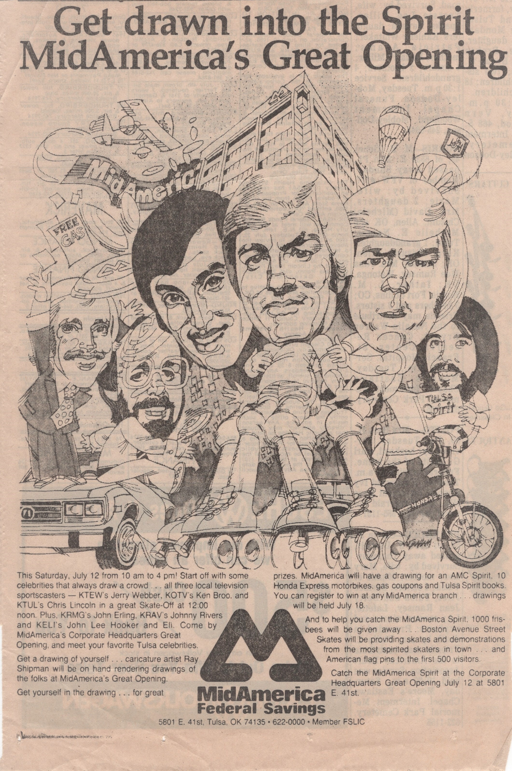 Here are some of Tulsa’s wild and crazy guys! July 12, 1986 three sportscasters duked it out with a Skate-Off. KTEW’s Jerry Webber, KOTV’s Ken Broo, and KTUL’s Chris Lincoln. If you were in Tulsa in the ’80s can you pick out who is who? Plus, KRMG’s John Erling, KRAV’s Johnny Rivers, and KELI’s John Lee Hooker and Eli.