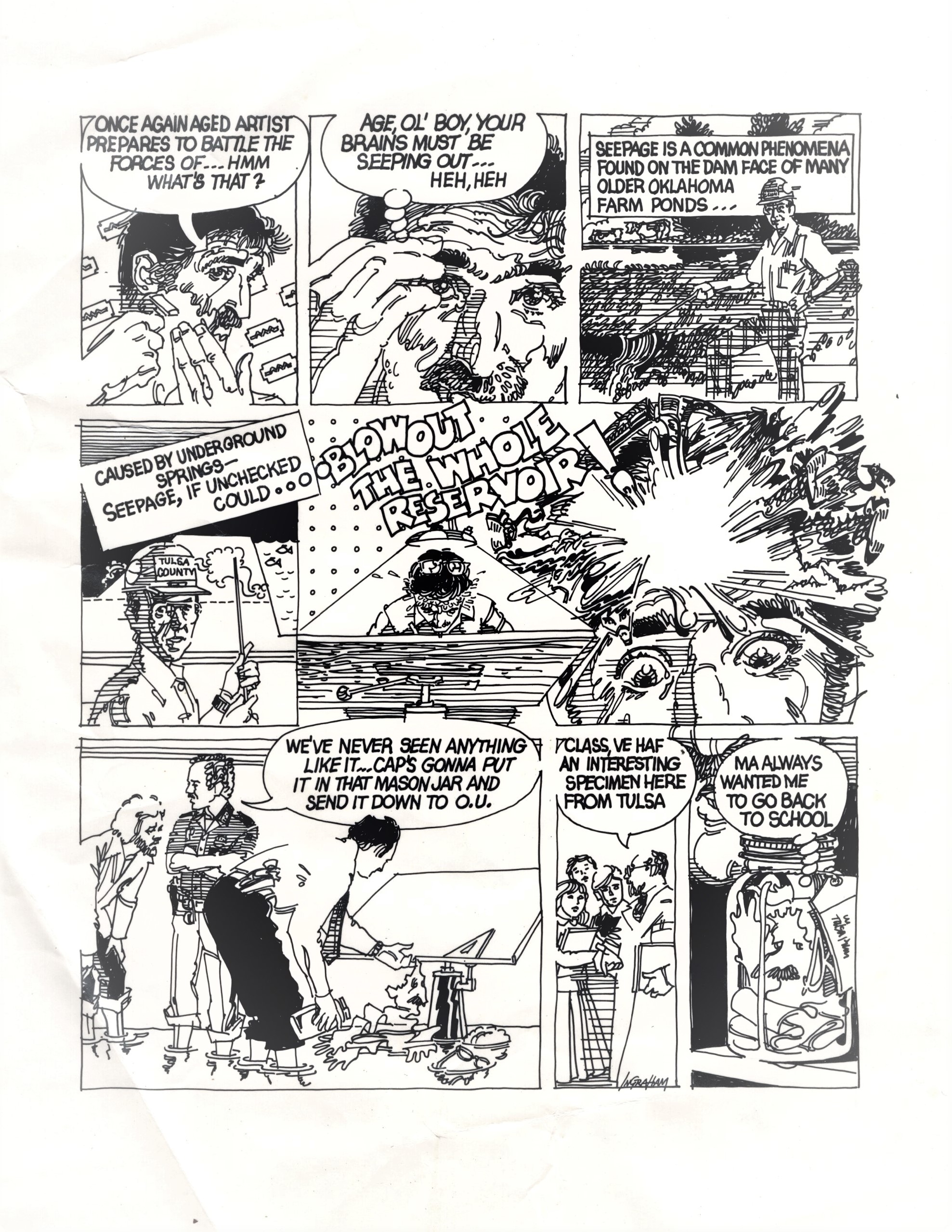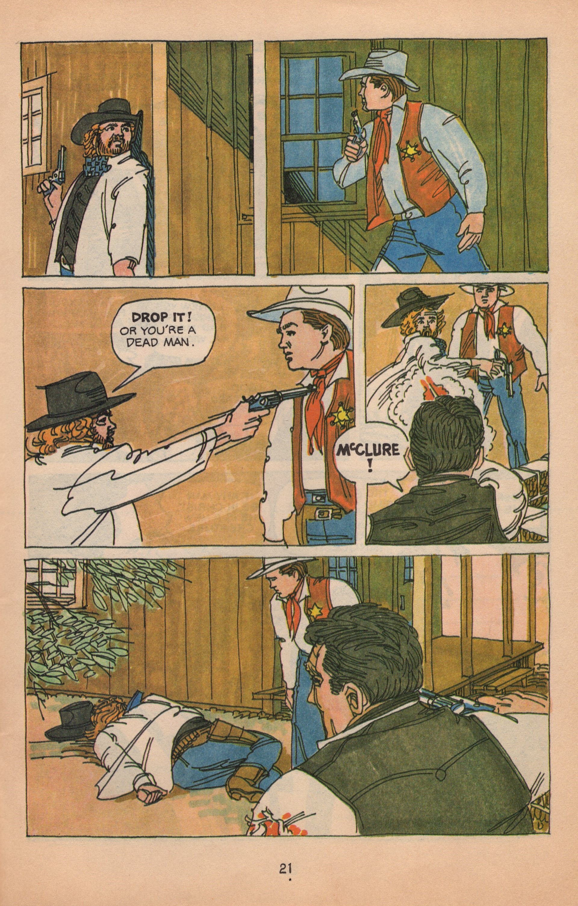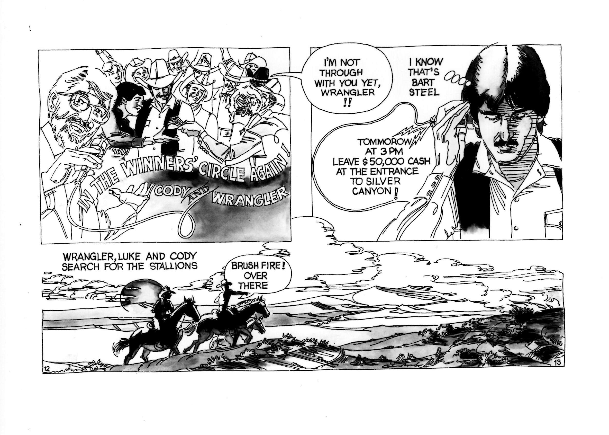 A school friend of Deane’s searching for his high school buddies wrote to Louise sometime after Deane had passed away, and wondered if he ever kept up his comic book-style talent. Yes! I found two comics from his working years. The first slideshow appears to feature actor Doug McClure. It is titled Wrangler to the Rescue and looks to be from late 1980s.