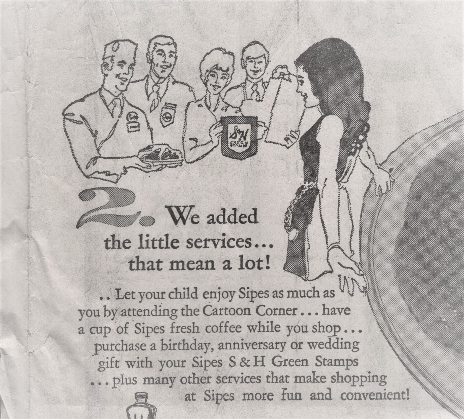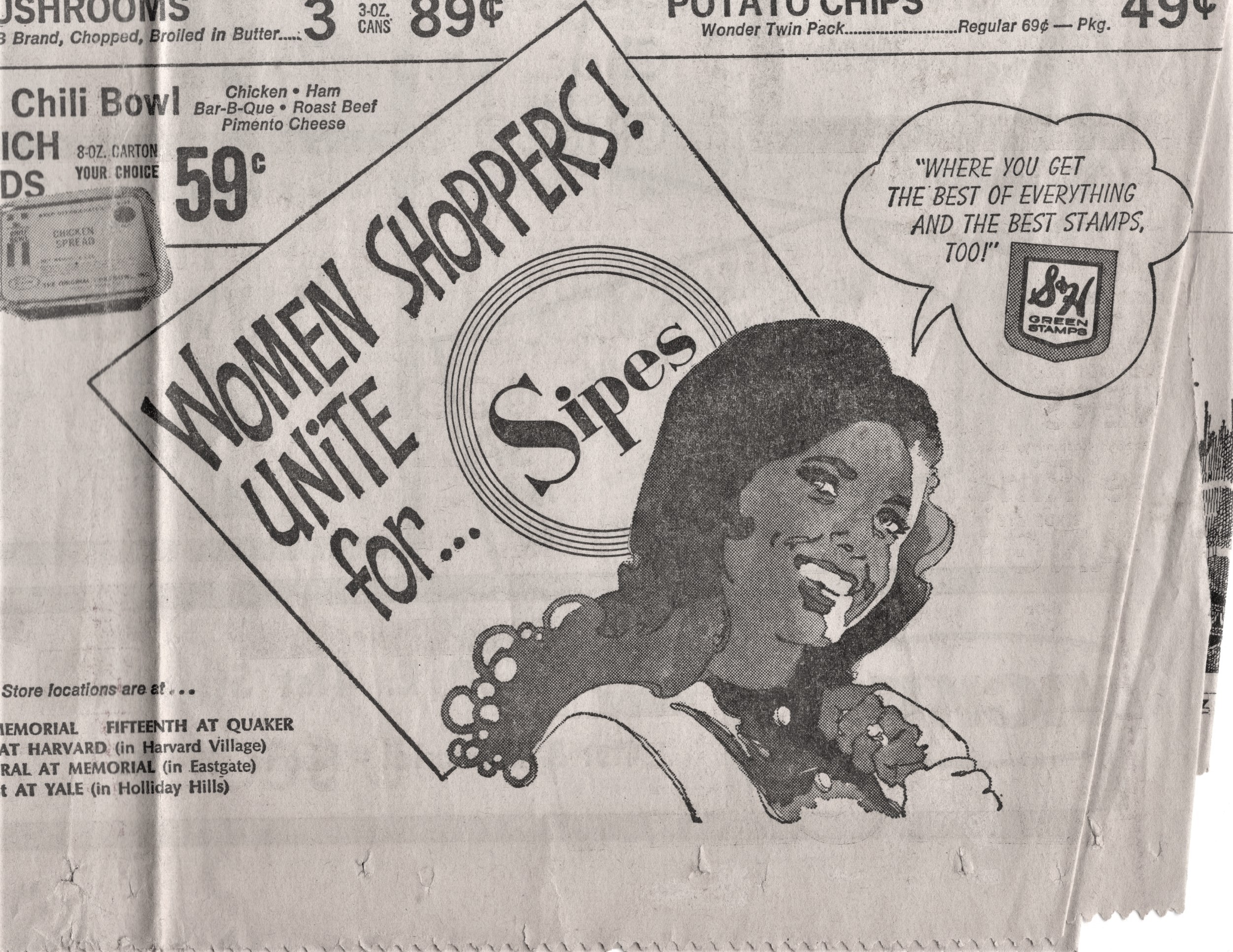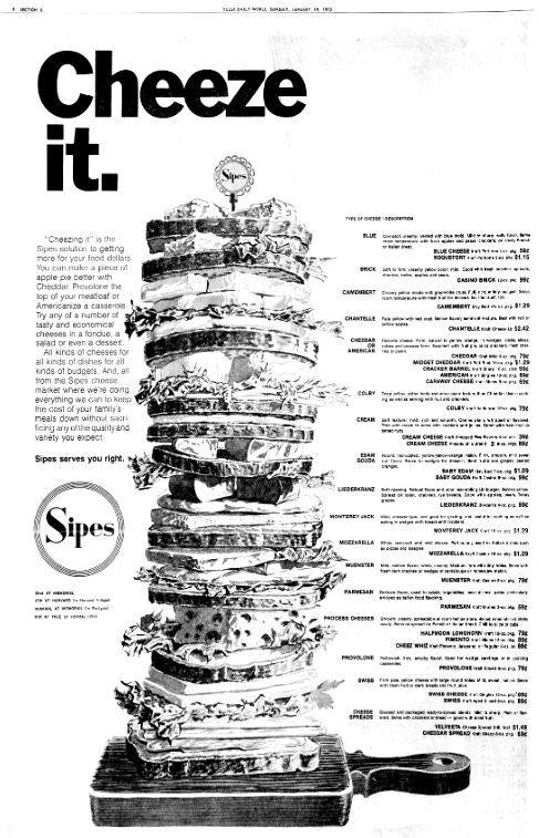 All the art above was for a one page Sipes ad, November 5, 1970. The page measured 22 3/4″ x 15″. What does your newspaper measure today?