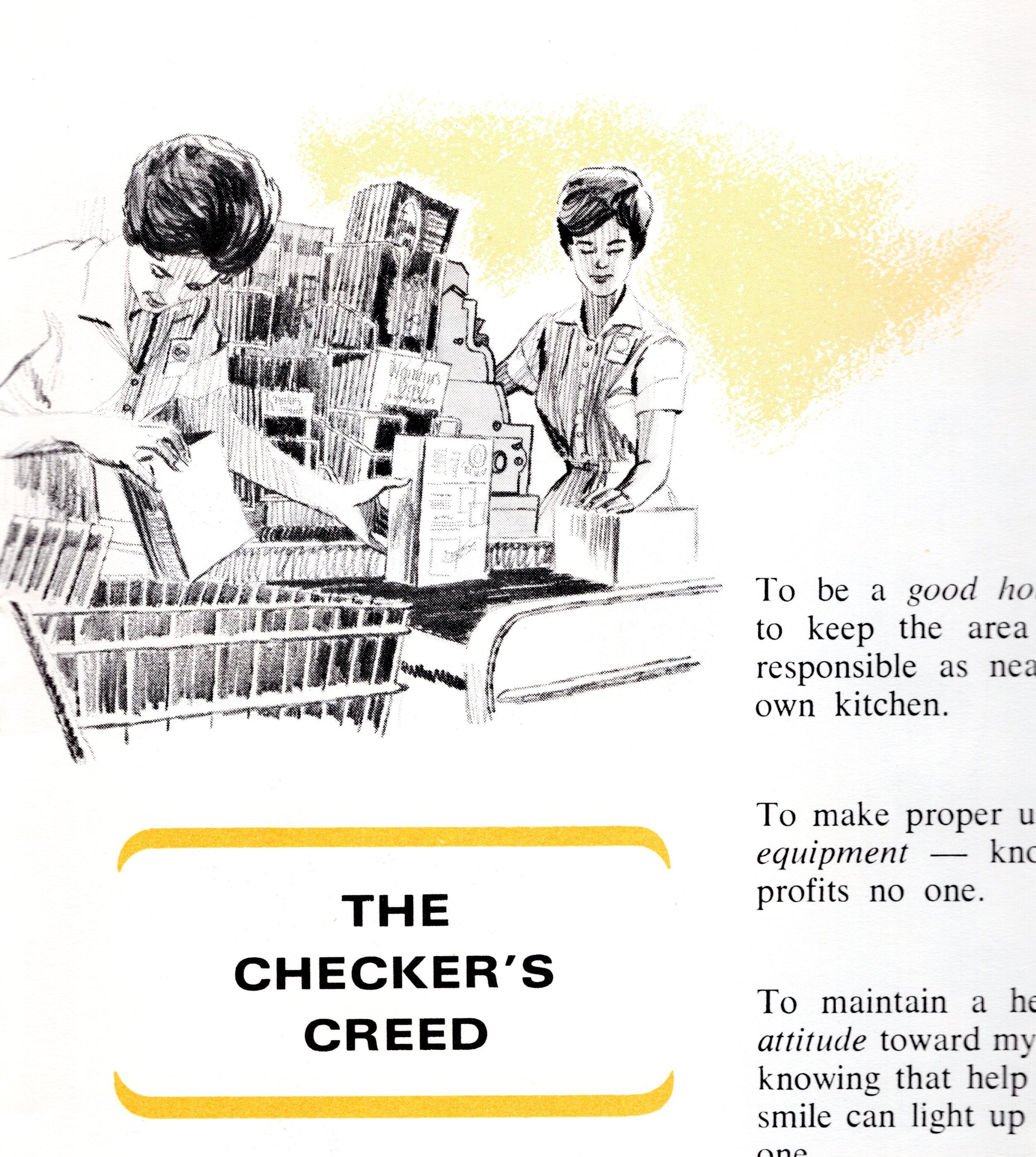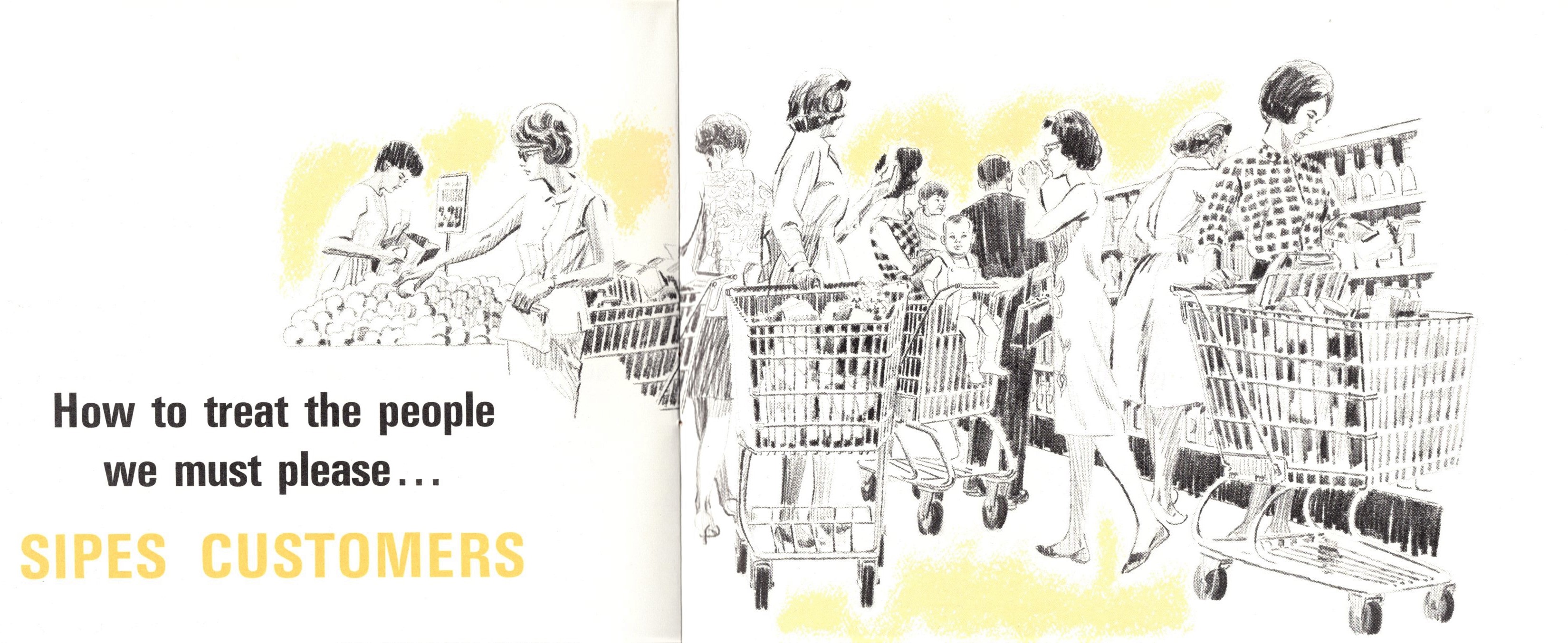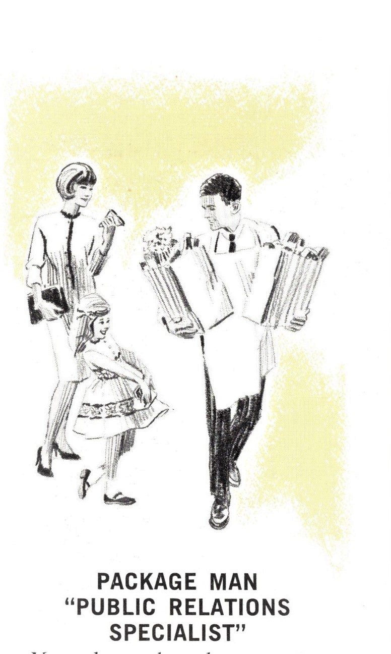 One of Deane’s early clients was Sipes Grocery. The art that follows comes from a 1965 employee booklet defining employee expectations. It is not Deane’s usual style but I am including it because he may likely have at least collaborated.