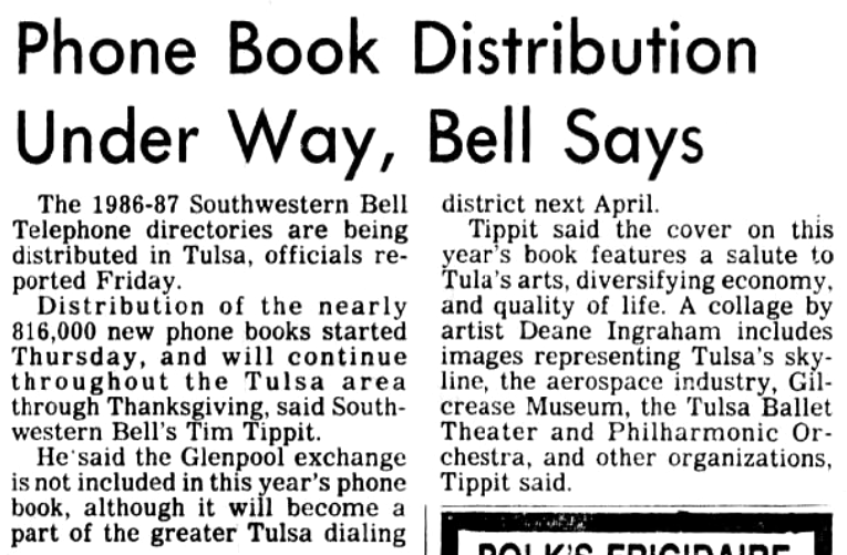 Tulsa World article, November 1, 1986
